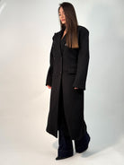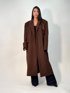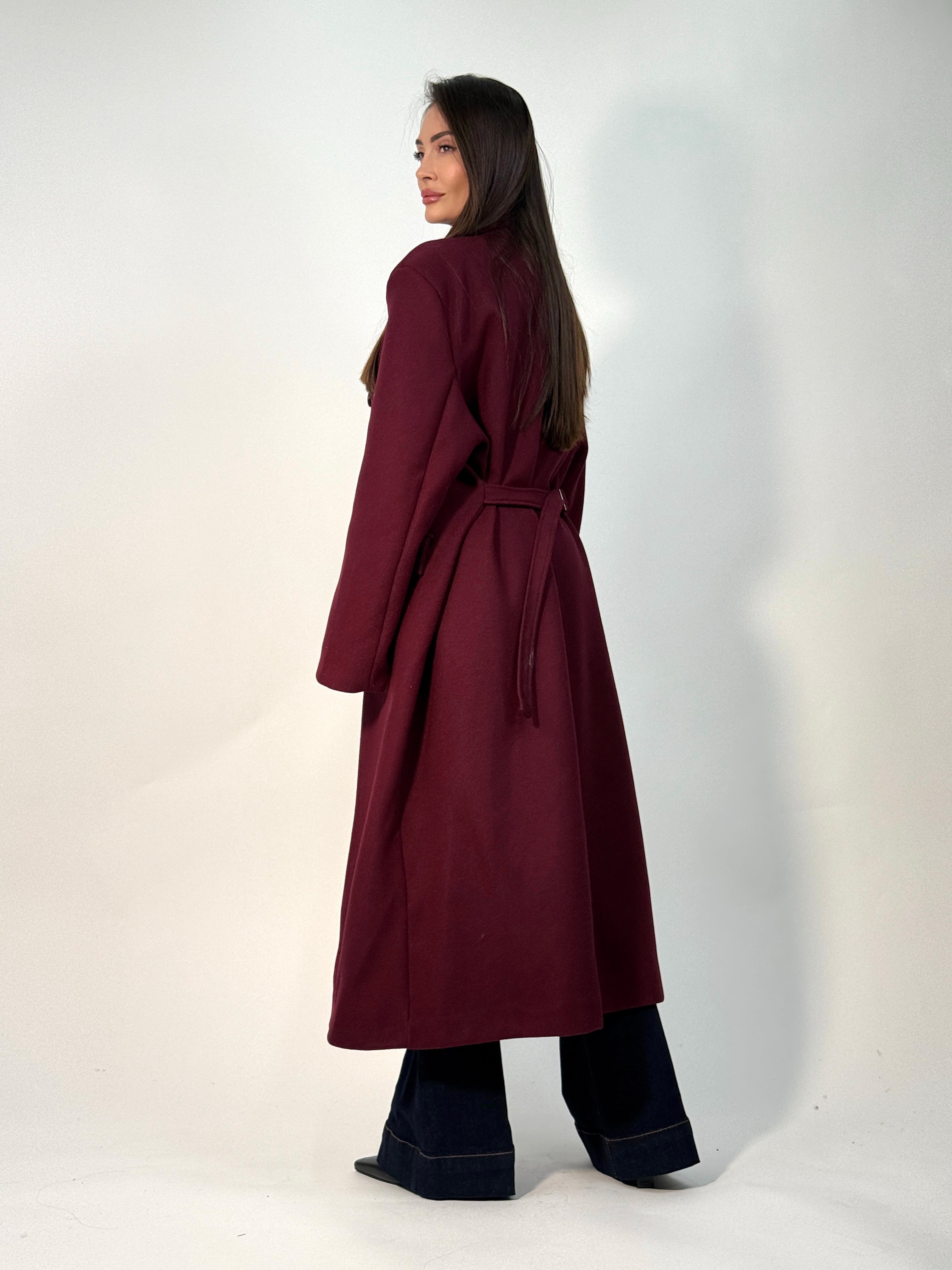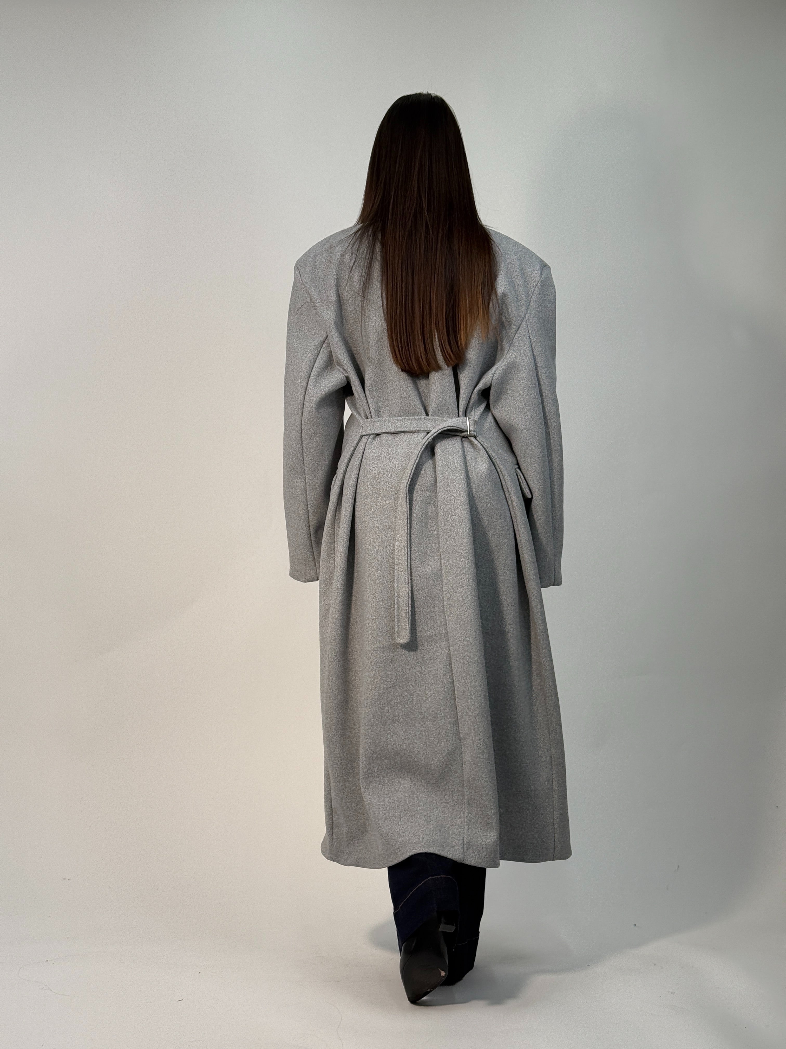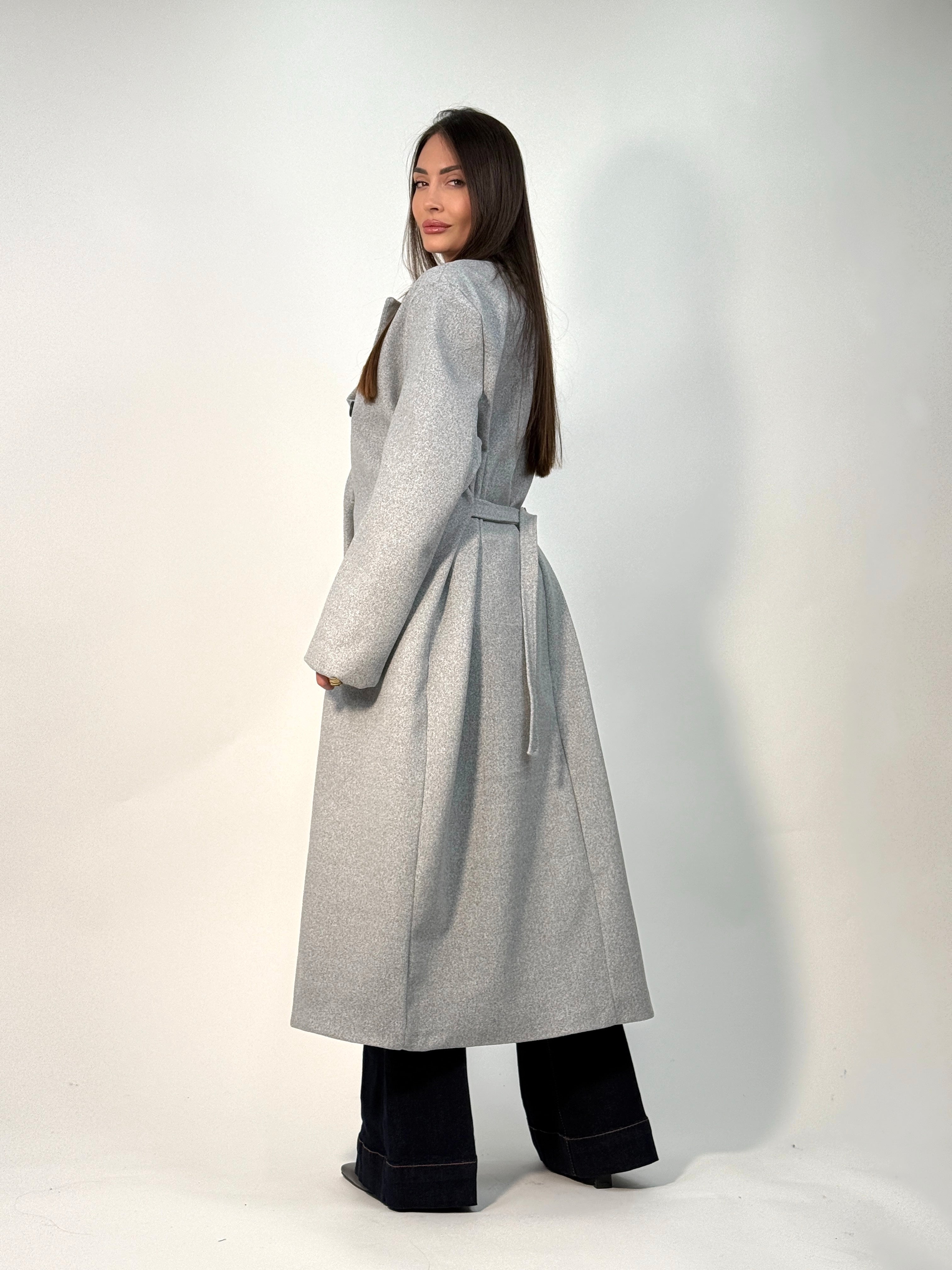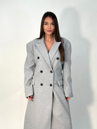 Cappotto dal taglio uomo, in misto lana ampio e imbottito a palline, con chiusura doppiopetto in misto lana. Sul retro presenta una regolazione che permette di definire meglio il punto vita.