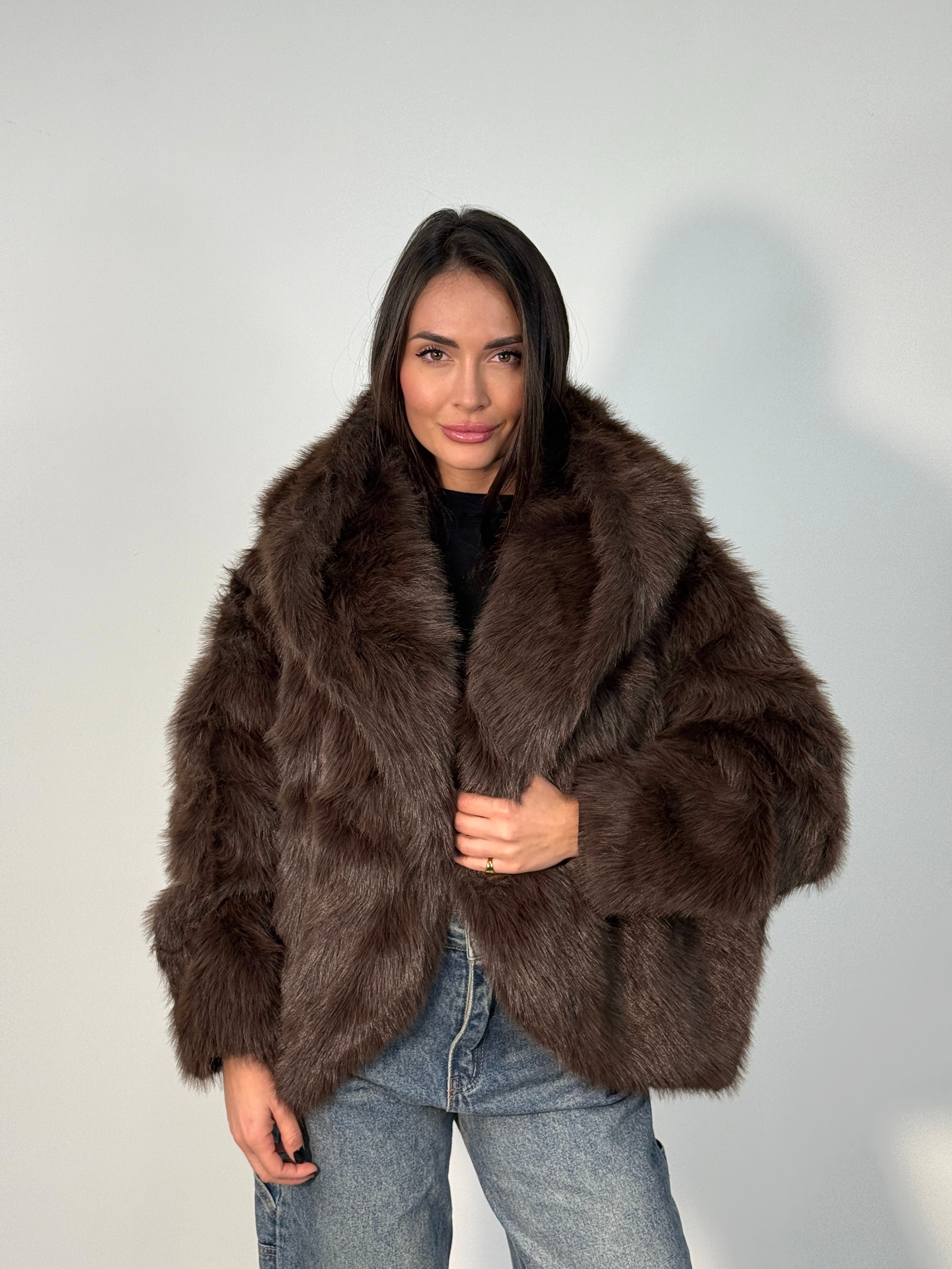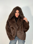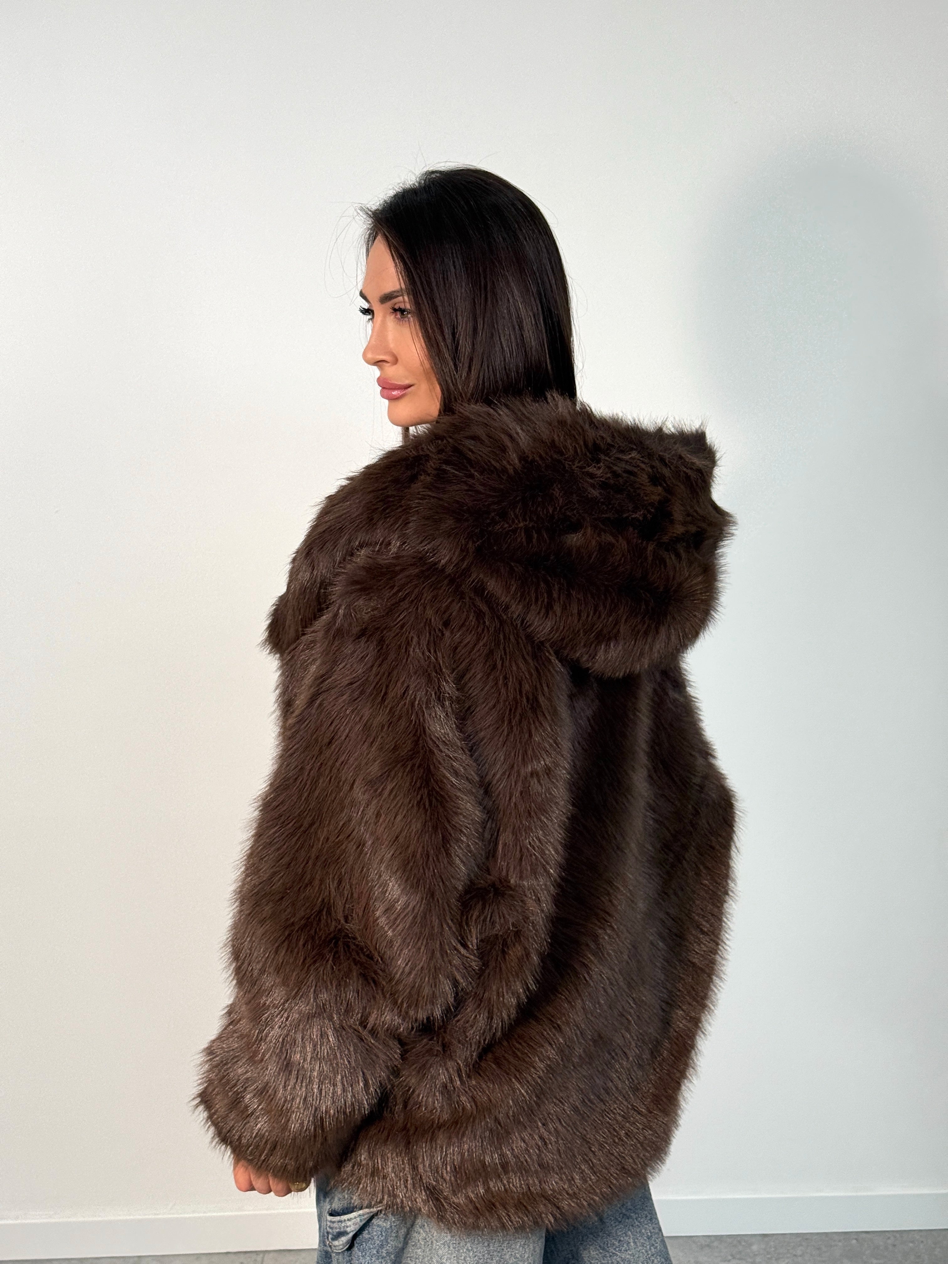 Eco-pelliccia dal pelo morbido e folto, dotata di cappuccio e chiusura frontale con clip. Completamente foderata internamente per un comfort extra. Taglia unica, ideale per look caldi e sofisticati.