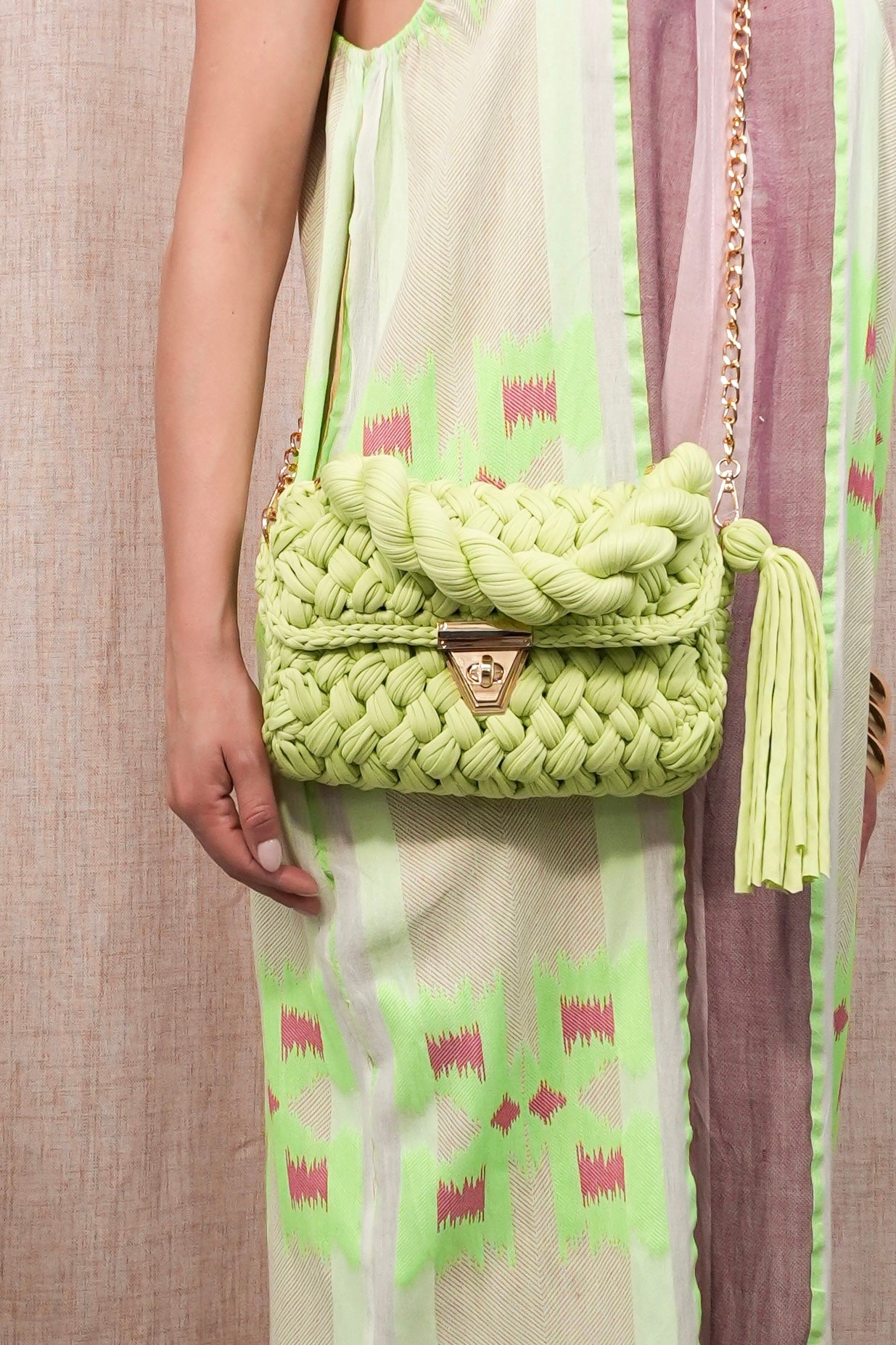 Borsa in corda 100% cotone, dal tessuto morbido e dal design moderno, con tracolla e manico per una comoda portabilità. Aggiunto un elegante dettaglio charme laterale con frange, che dona un tocco di movimento e stile boho-chic. Perfetta per completare i tuoi outfit estivi con un accento trendy e originale.