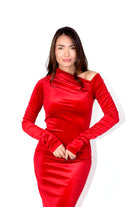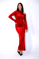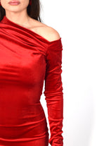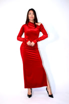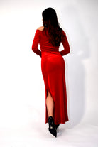 Abito lungo in velluto con scollatura trasversale e spacchetto laterale, morbido e avvolgente. Taglia unica con vestibilità elegante e femminile, ideale per serate e occasioni speciali.