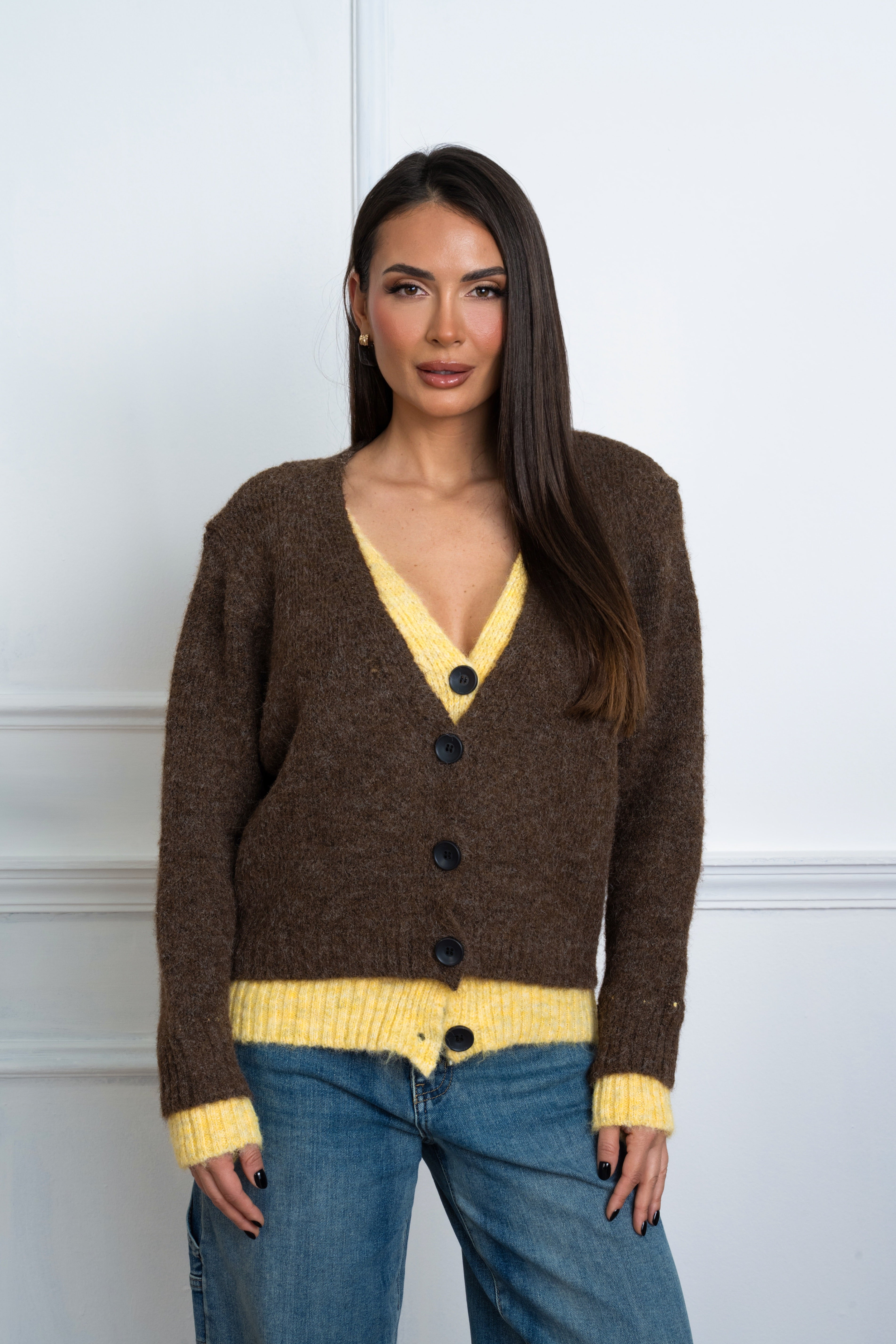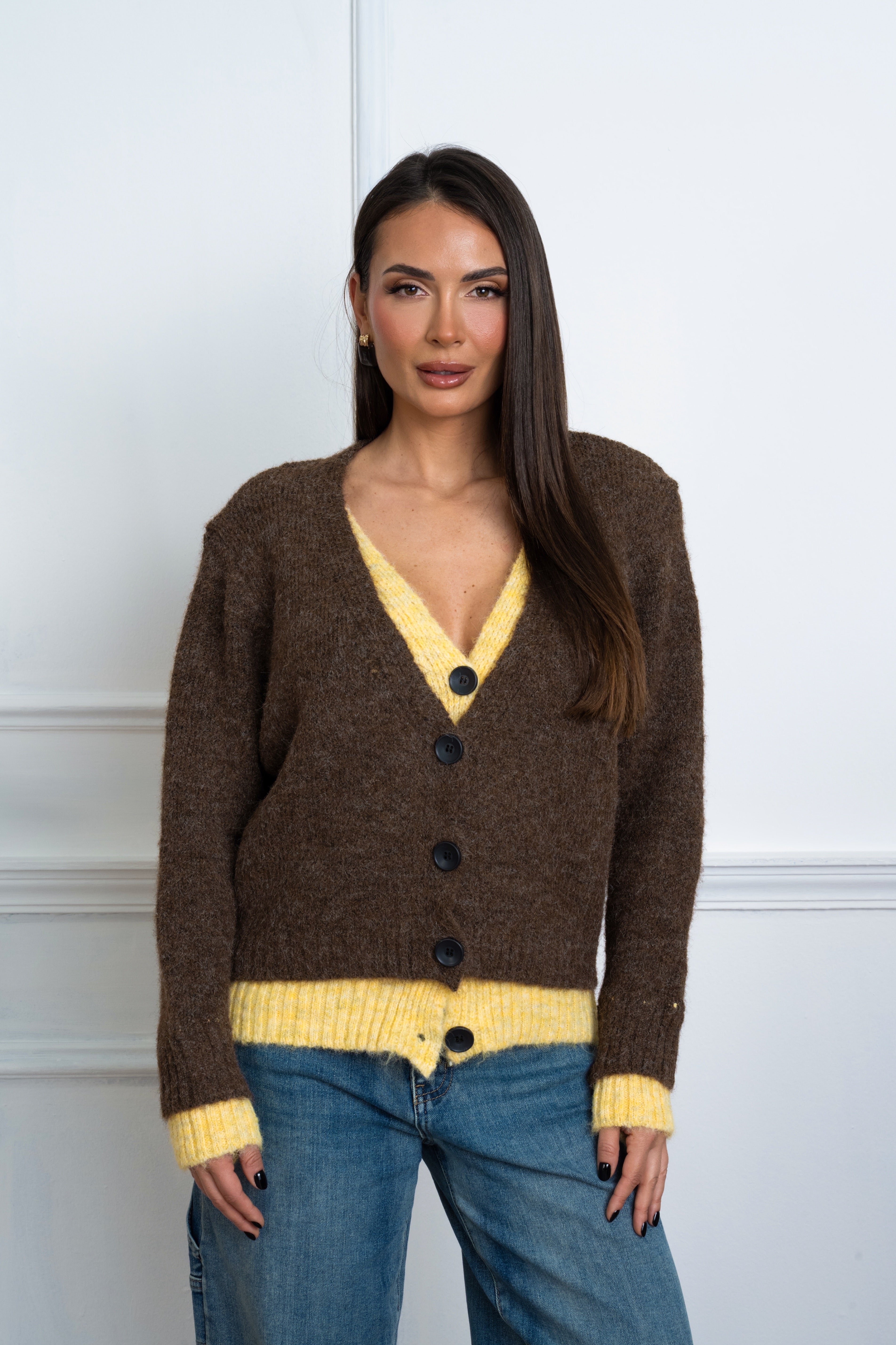 Pull con bottoni frontali e dettagli a contrasto, taglia unica, morbido e versatile per outfit casual e alla moda.