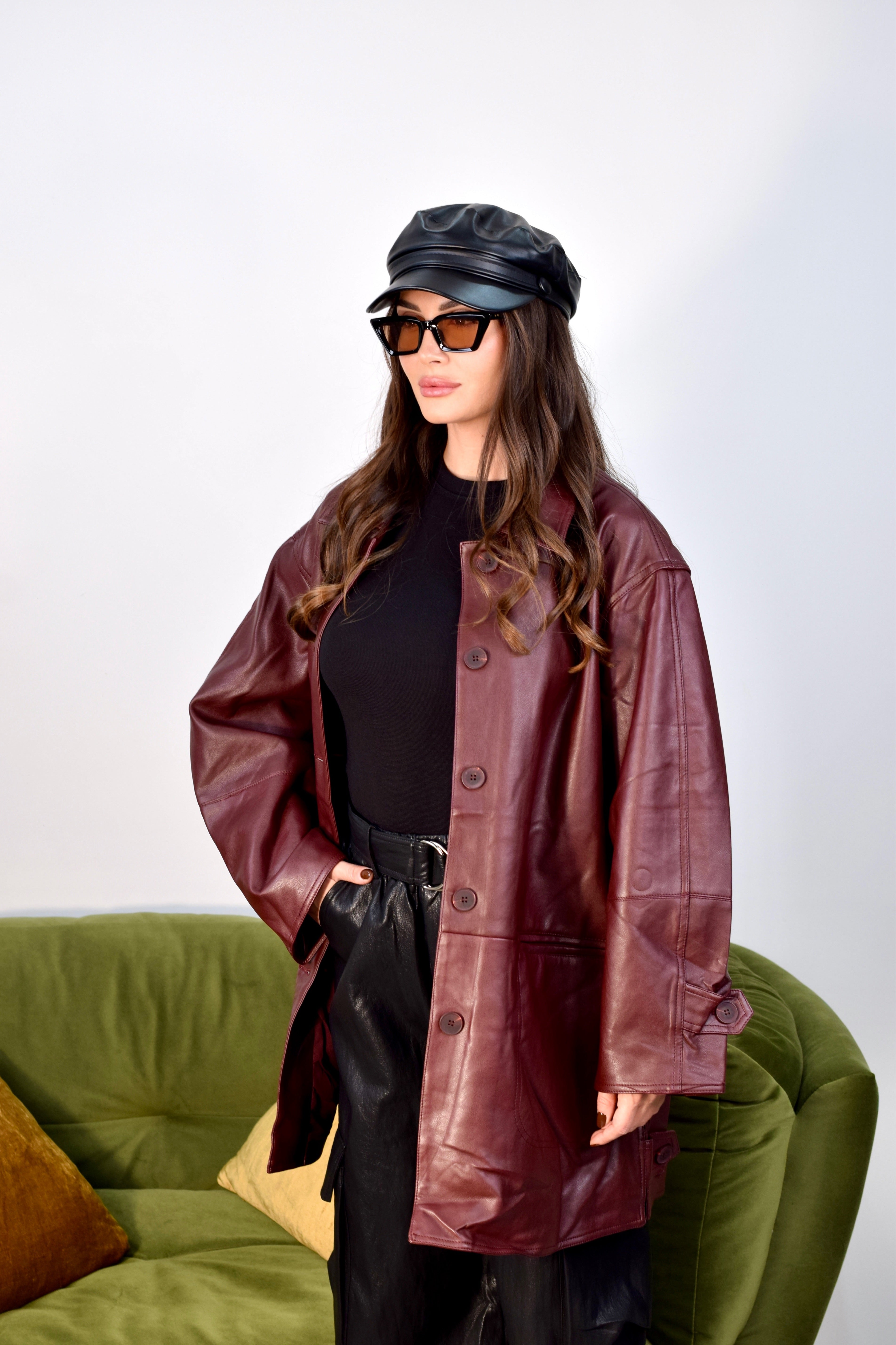 Giacca over in ecopelle in taglia unica, dal fit comodo e moderno, ideale per un look urbano e contemporaneo in ogni occasione.