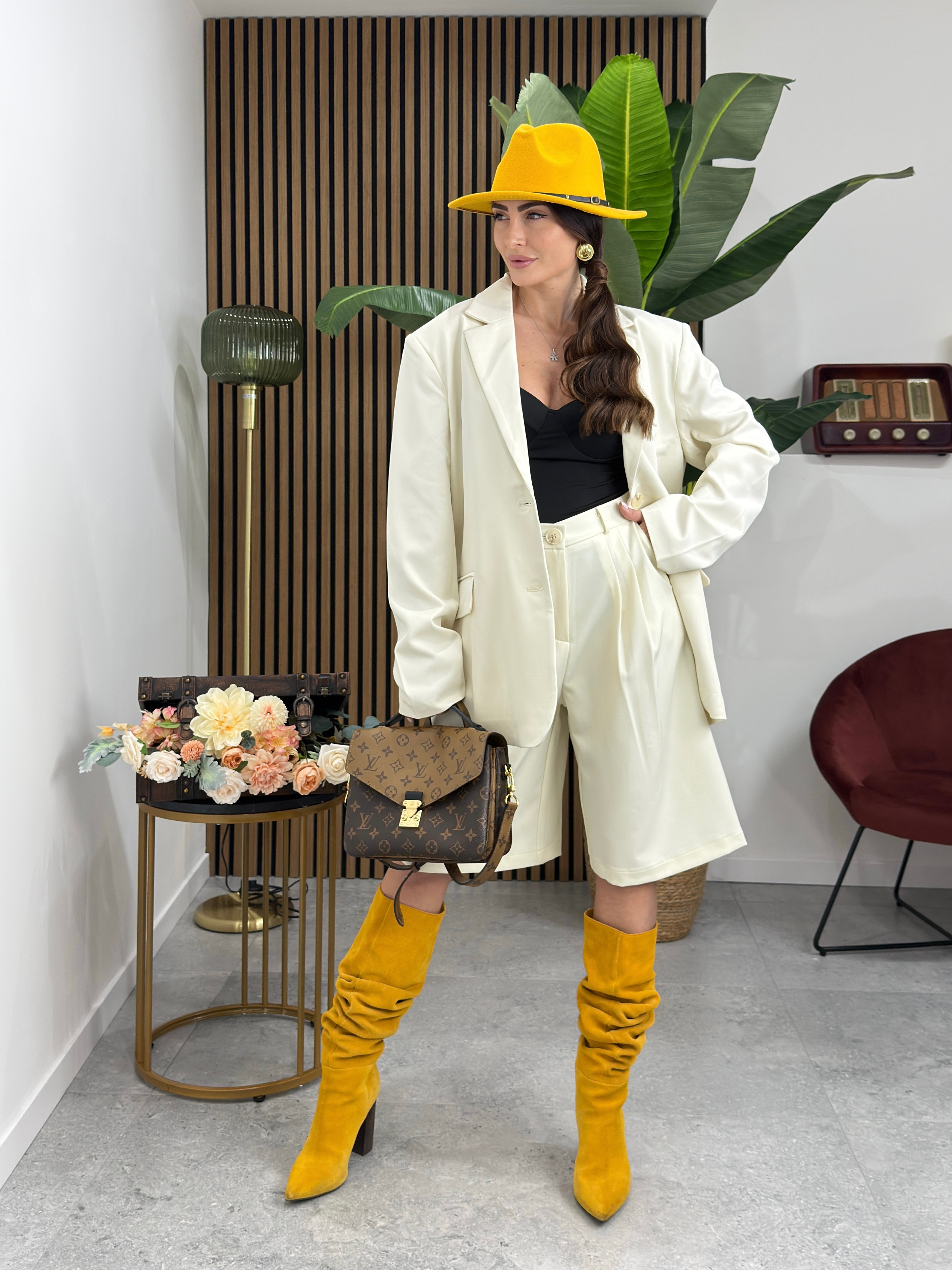 Bermuda a vita alta dal fit ampio e sartoriale, con pences frontali che donano struttura e stile. Un capo versatile e raffinato, ideale per creare look freschi e sofisticati