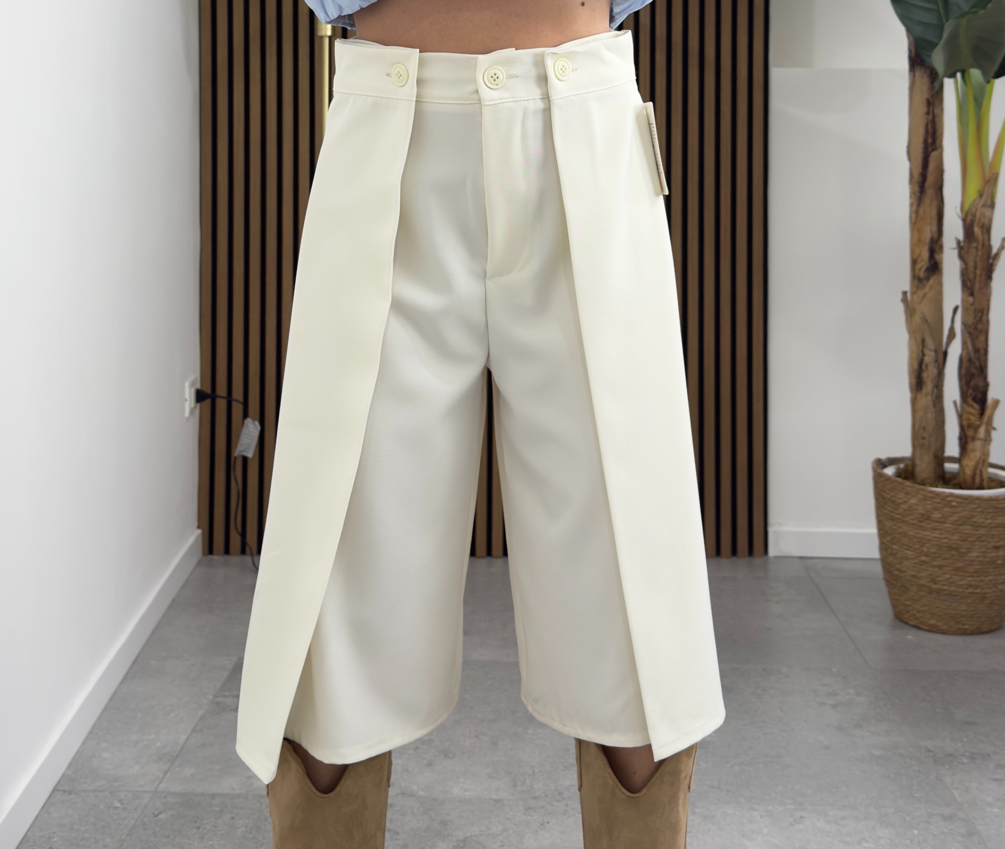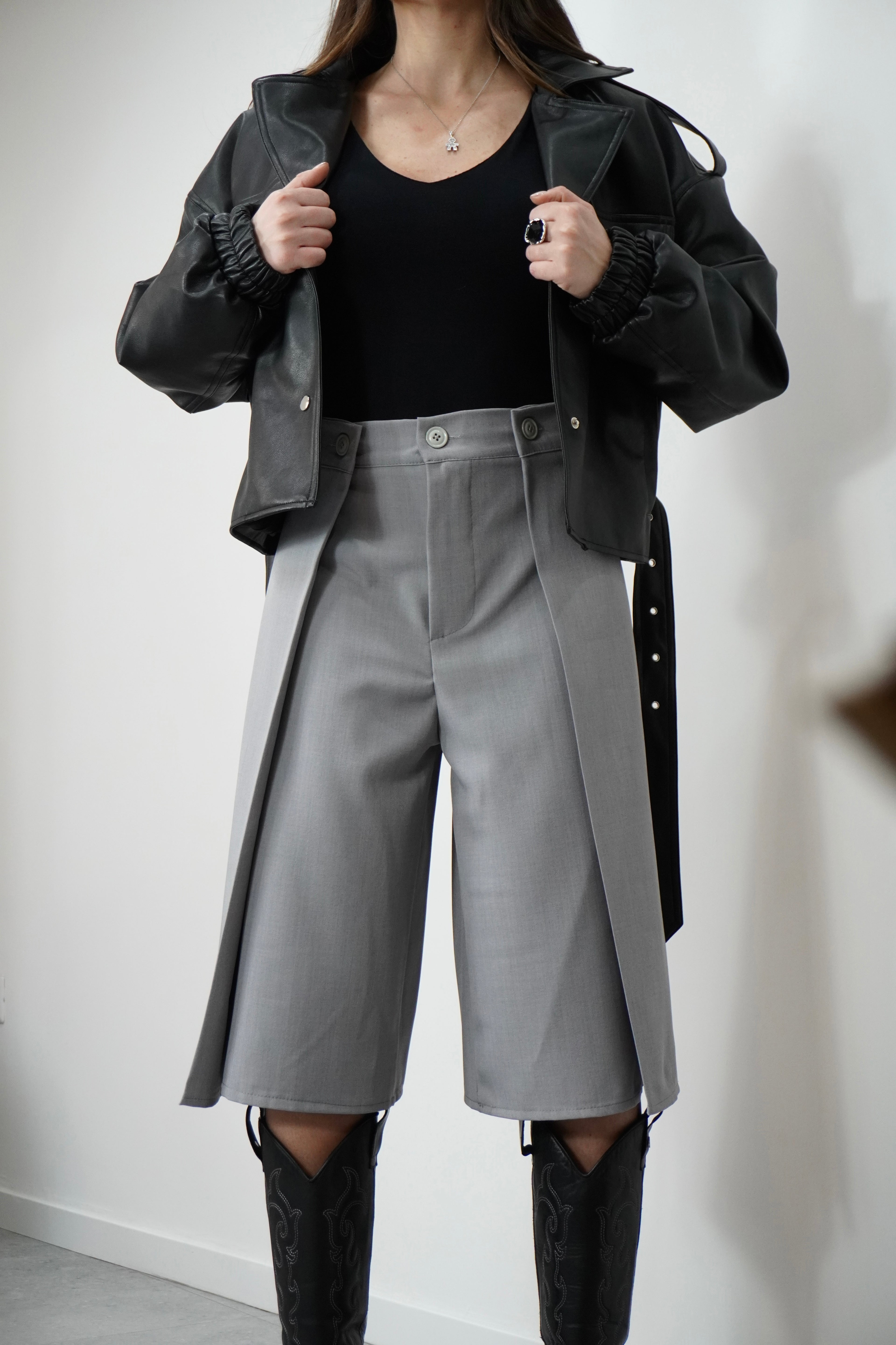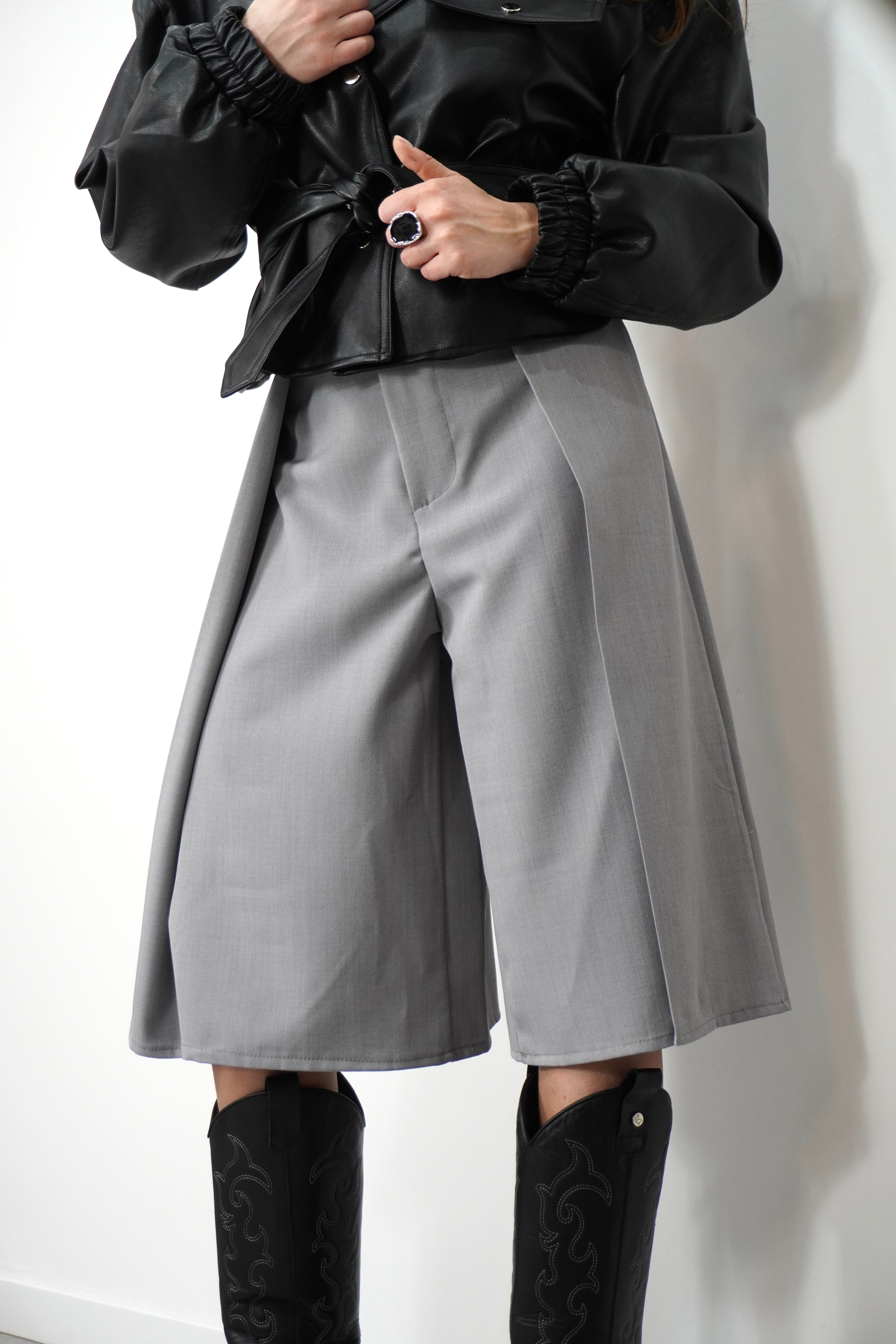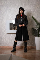 Bermuda neri con maxi pieghe frontali, dal taglio elegante e moderno. Perfetti per un look sofisticato e versatile.