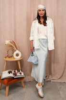 Gonna lunga in satin, ampia e leggera, perfetta per un look elegante ma confortevole. Realizzata in taglia unica con elastico in vita, si adatta facilmente a diverse fisicità garantendo massima comodità e femminilità.