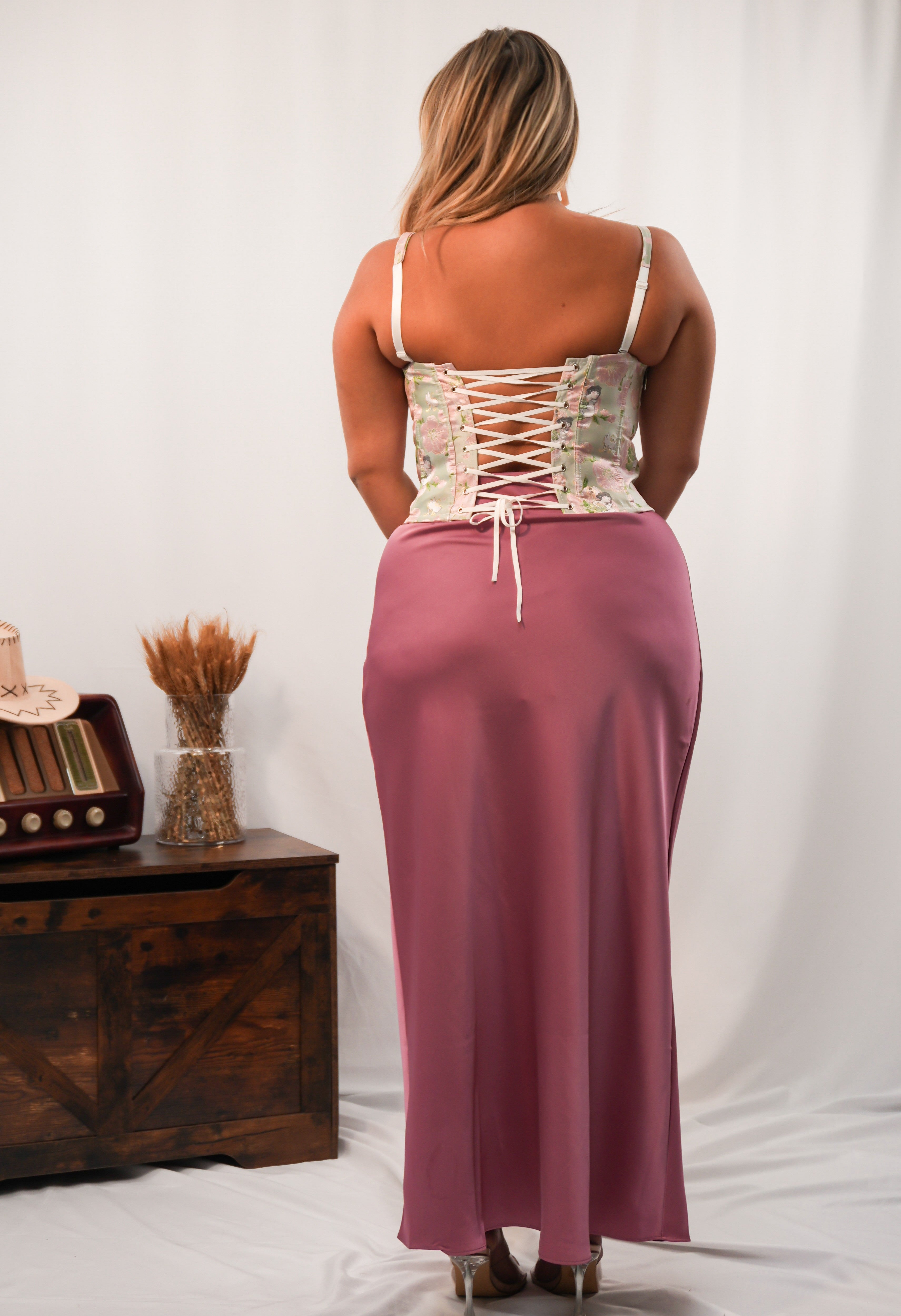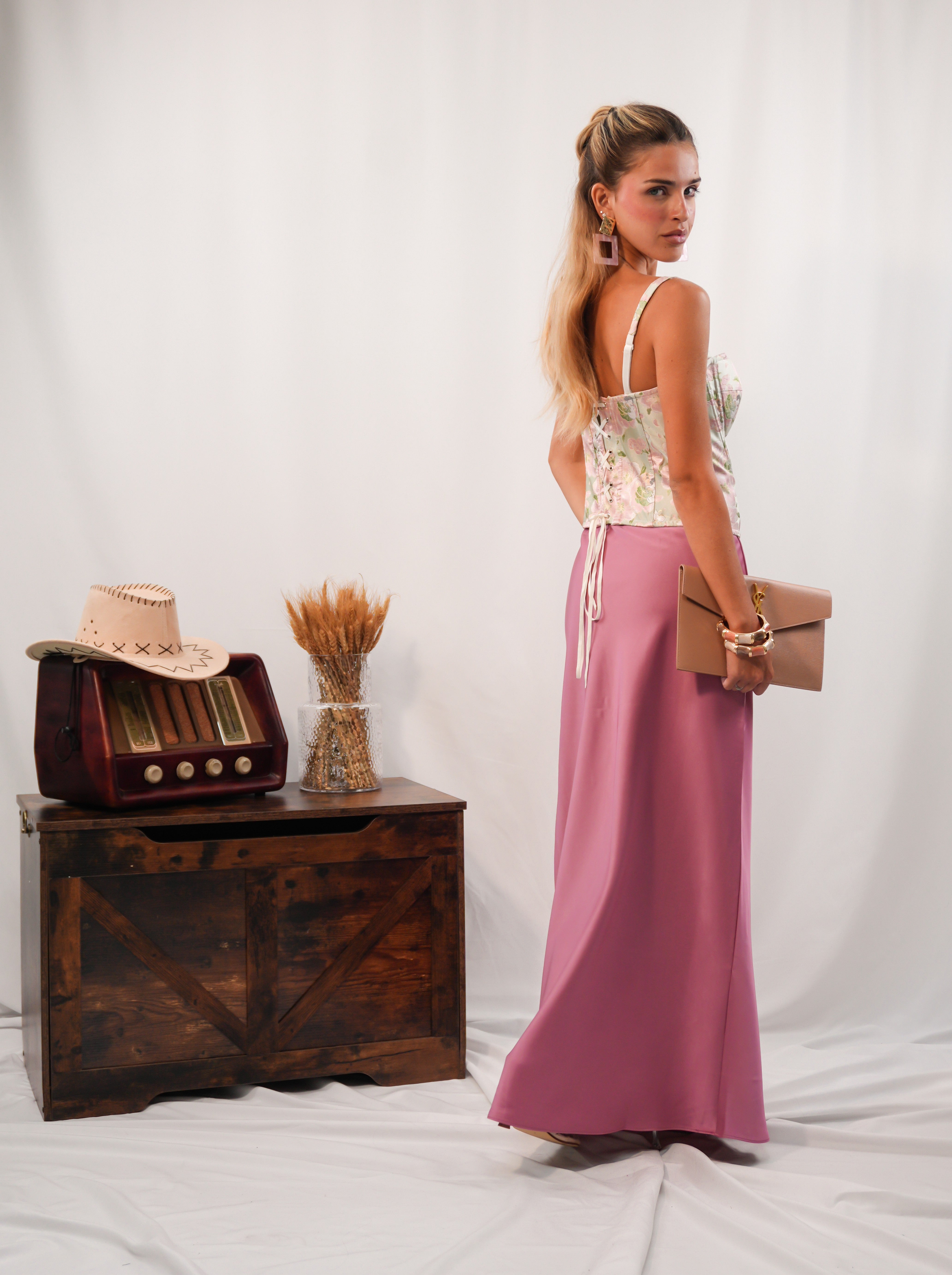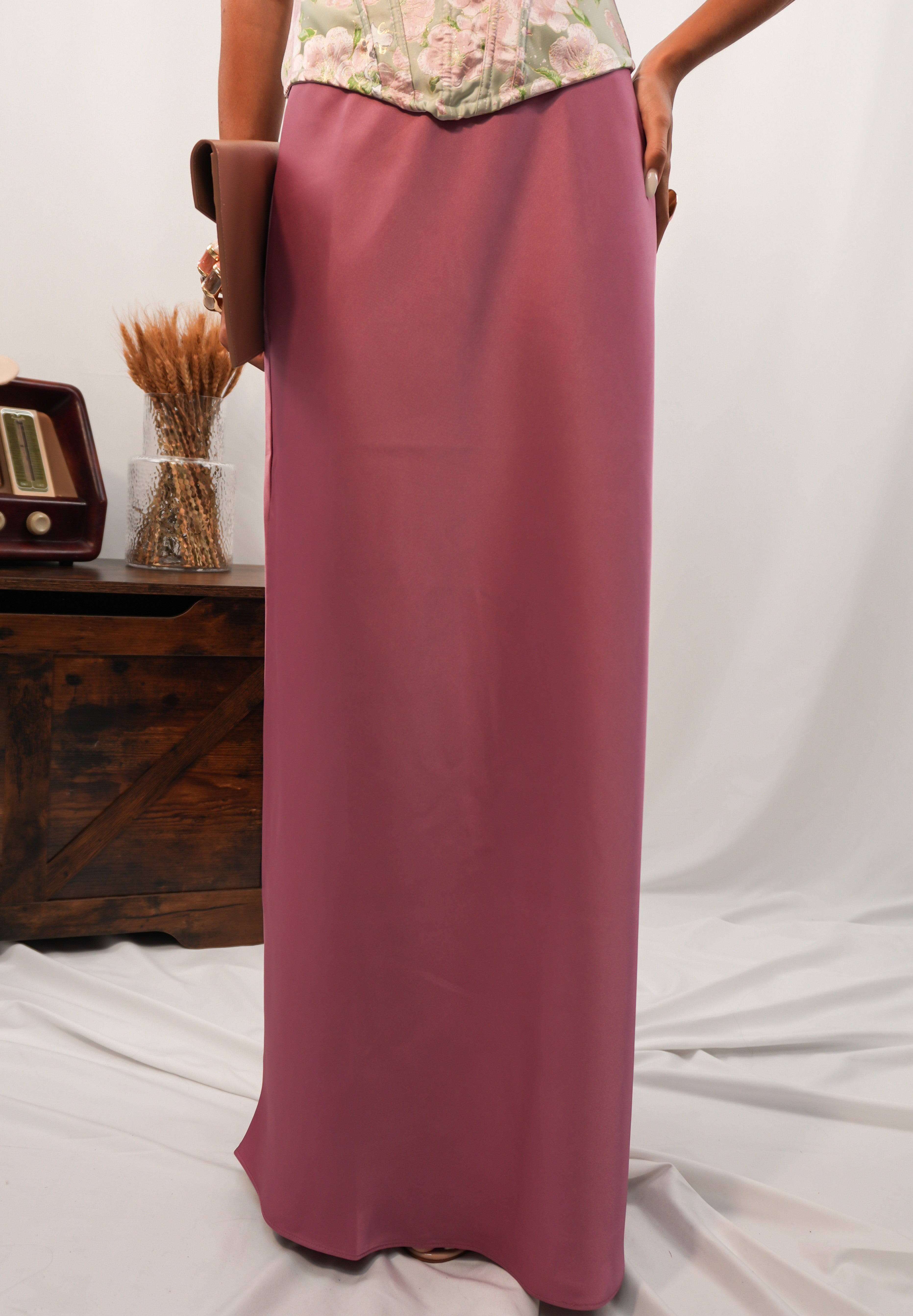 Gonna effetto satin in tessuto simil raso, con elastico in vita che assicura comfort e vestibilità versatile. Un capo fluido e femminile, adatto a ogni forma fisica.