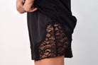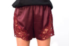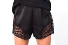 Short in simil raso con eleganti dettagli in pizzo laterali, elasticizzati in vita per una vestibilità comoda. Taglia unica. Ideali per un look femminile e raffinato.