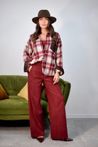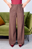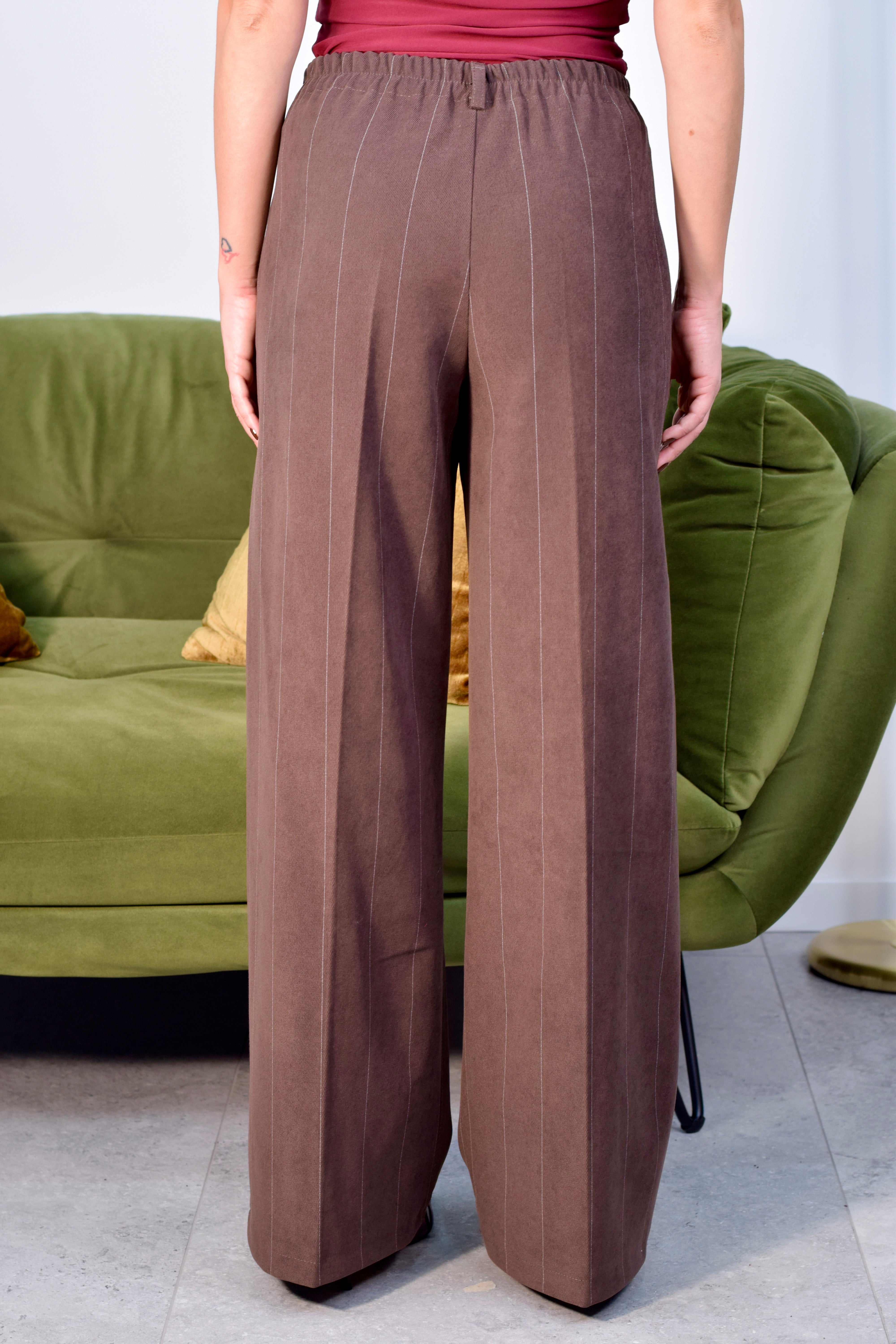 Pantalone palazzo in flanella a righe sottili con elastico sul retro comodo ed elegante perfetto per un look chic e rilassato in città o nel tempo libero