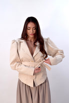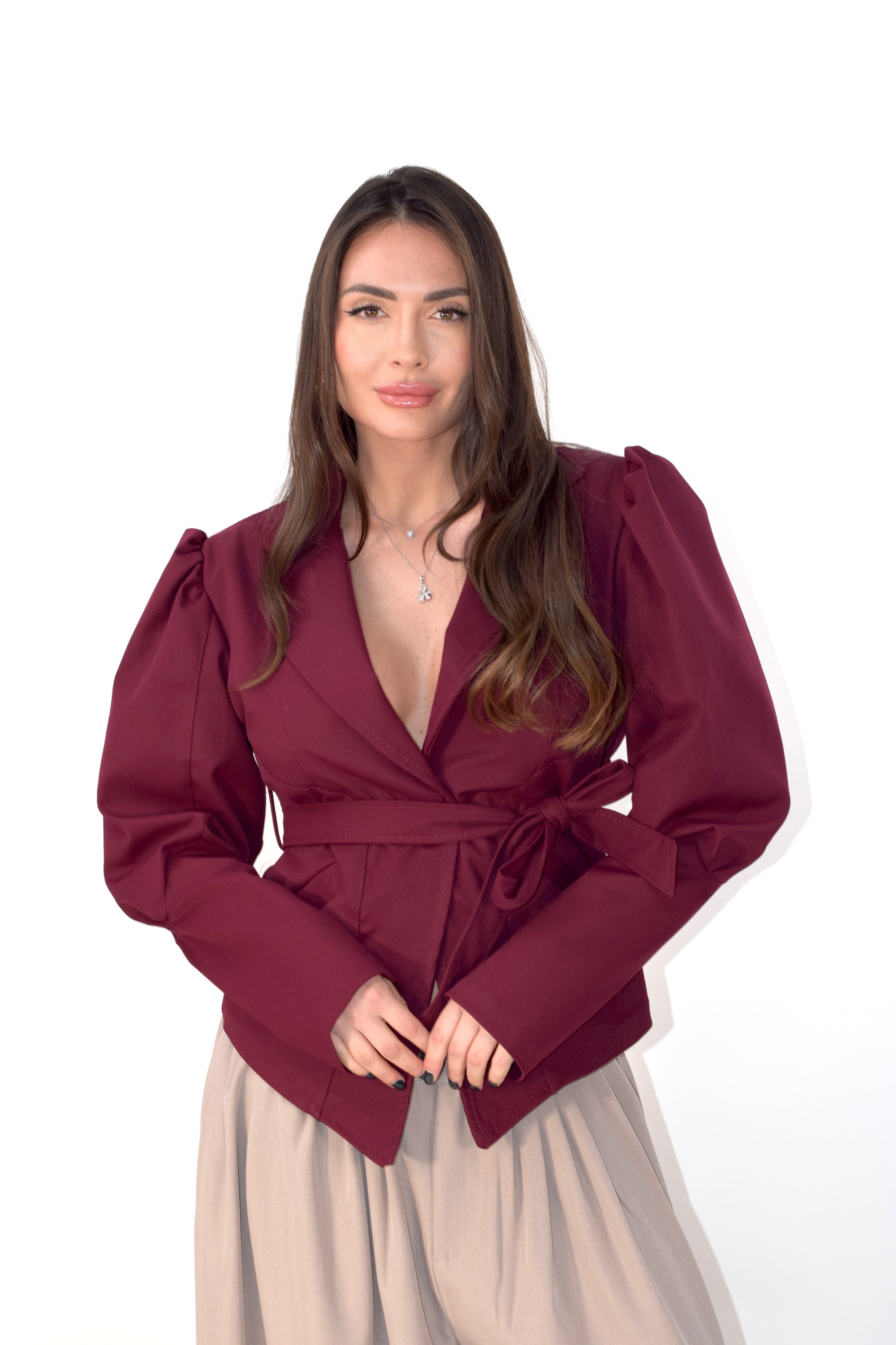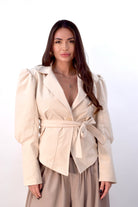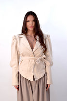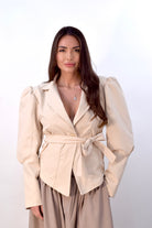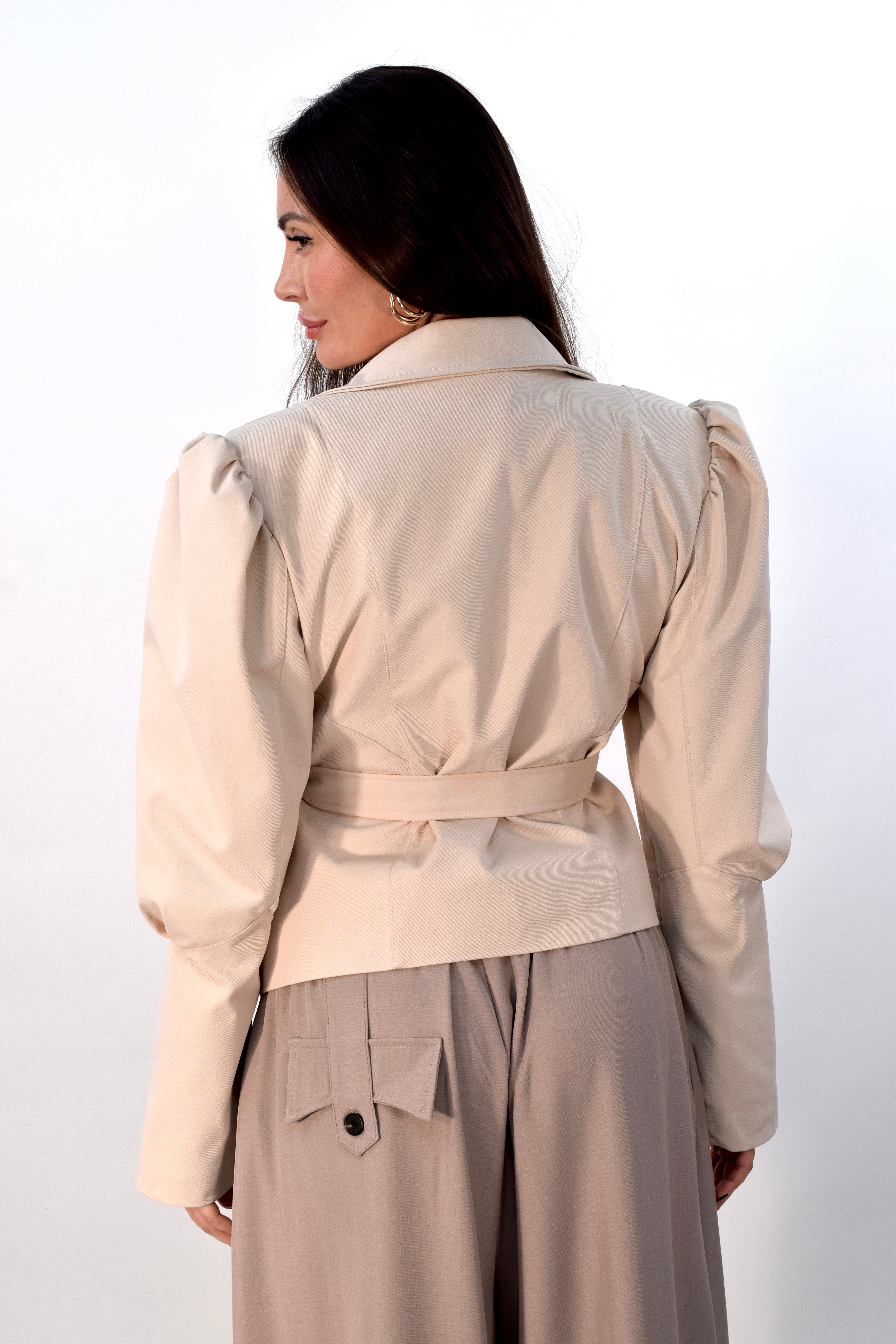 Giacca avvitata dal taglio femminile con spalline a sbuffo. Dotata di cintura in vita regolabile e bottone frontale centrale per una vestibilità definita. Modello taglia unica.