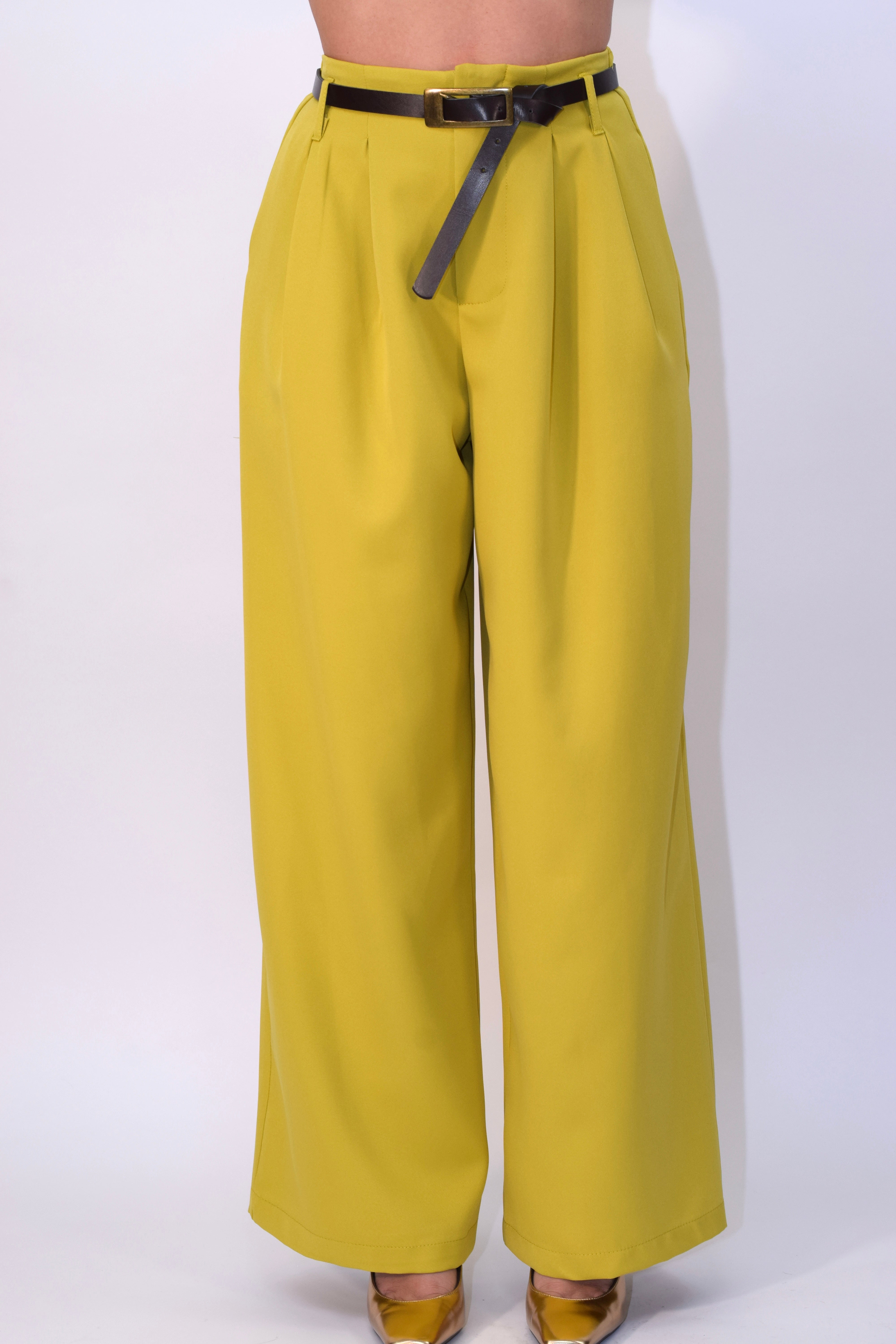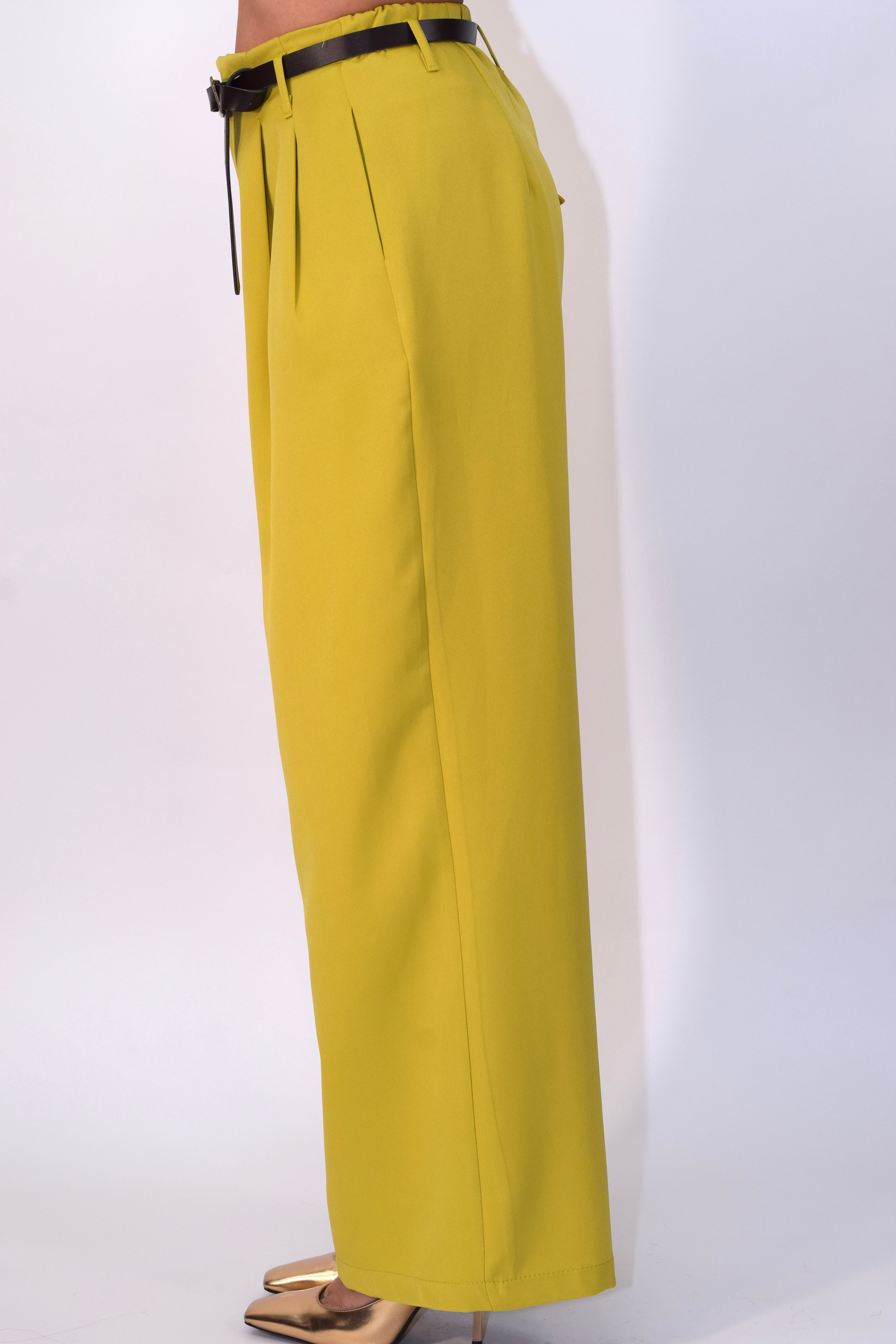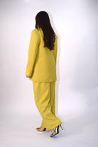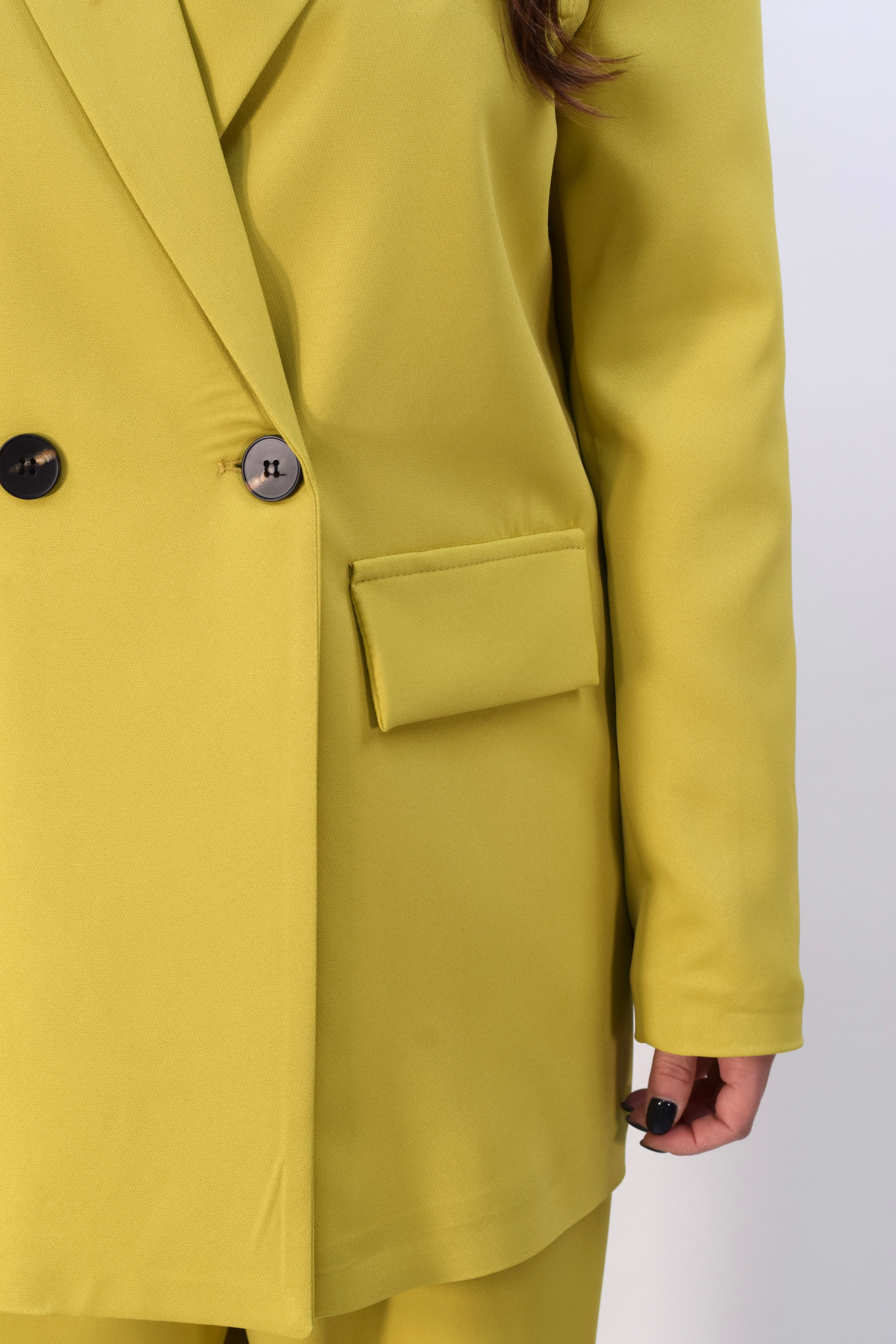 Tailleur due pezzi composto da giacca con chiusura doppiopetto e spalline imbottite. Pantalone ampio e fluido con zip frontale e cintura incorporata. Modello taglia unica.