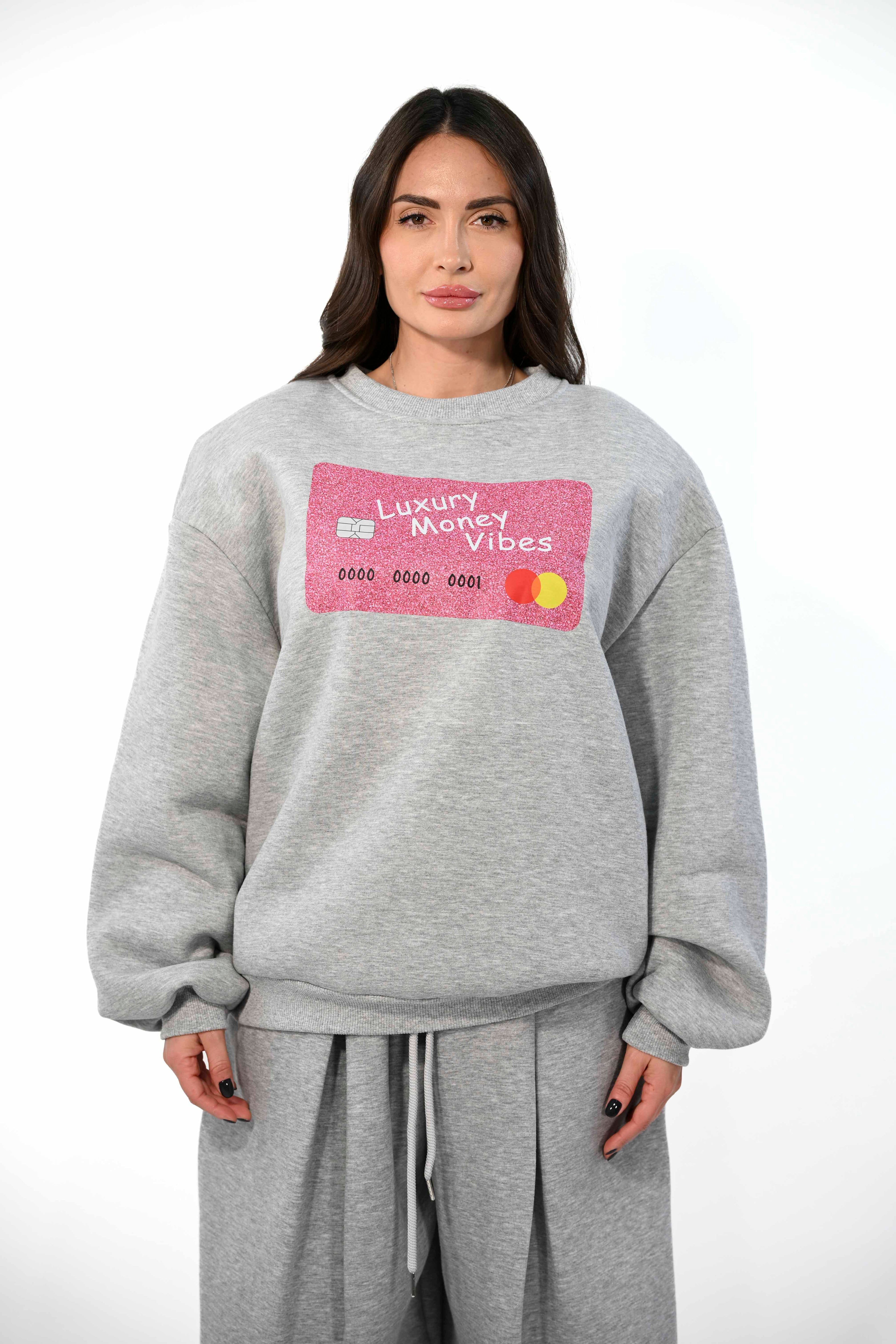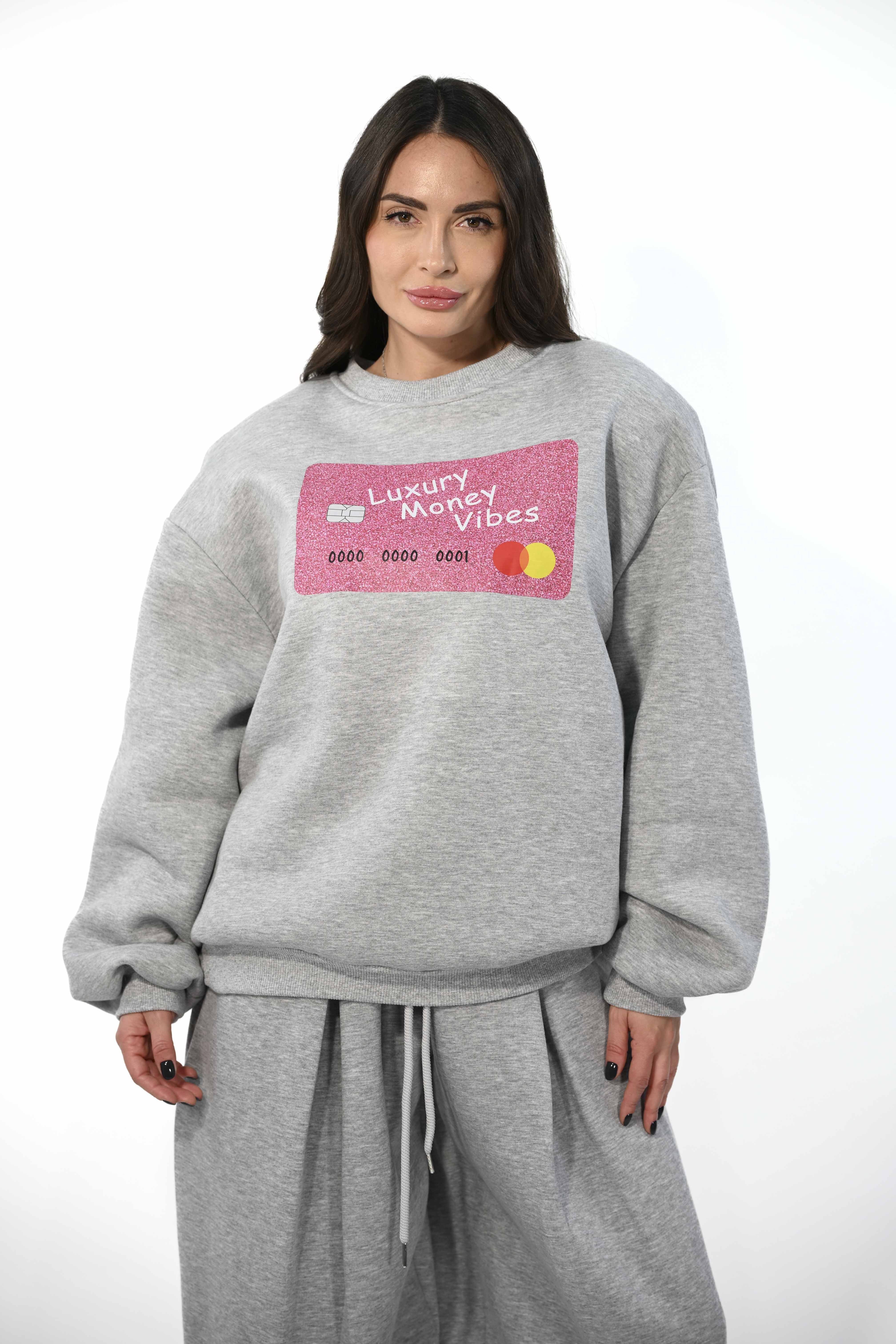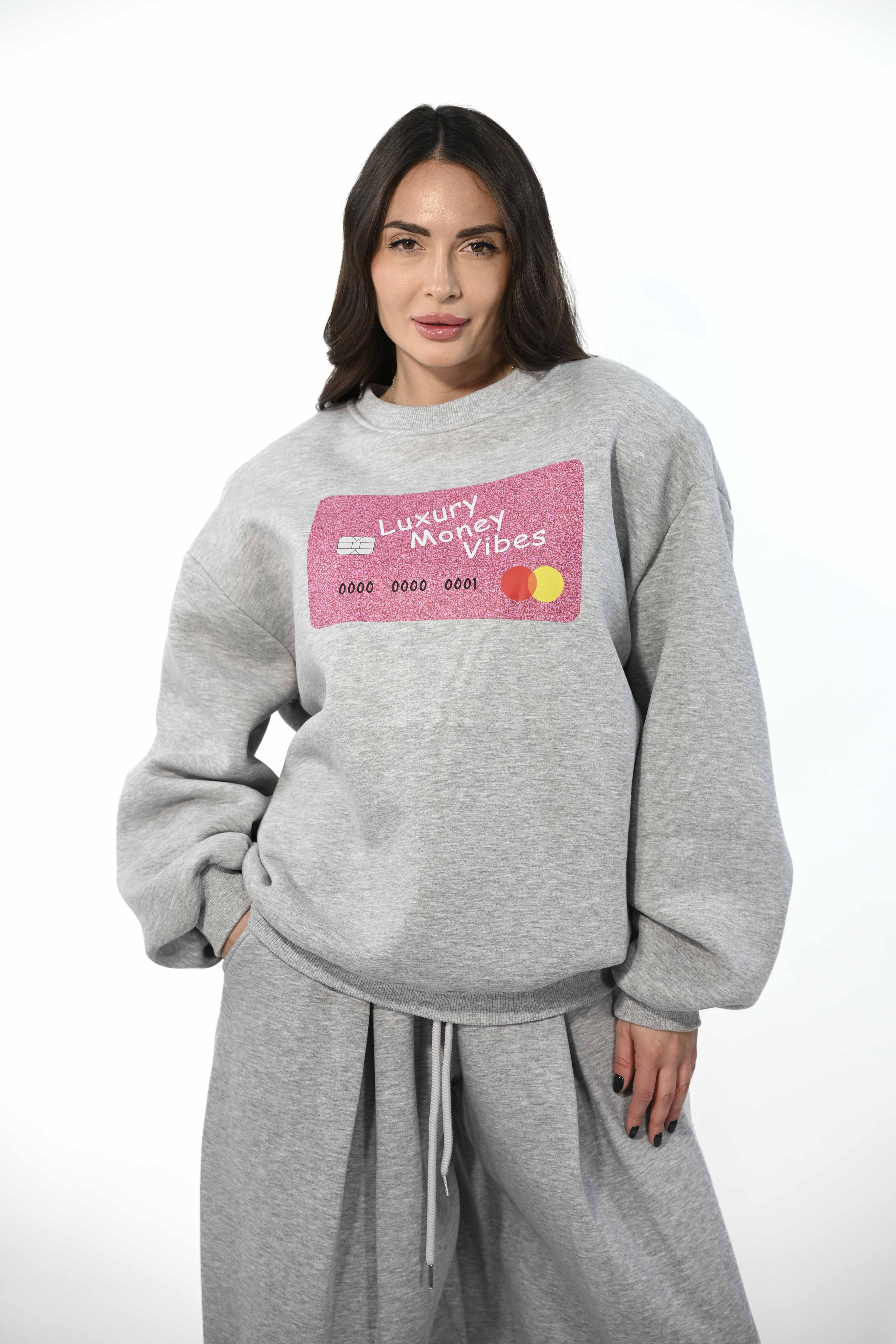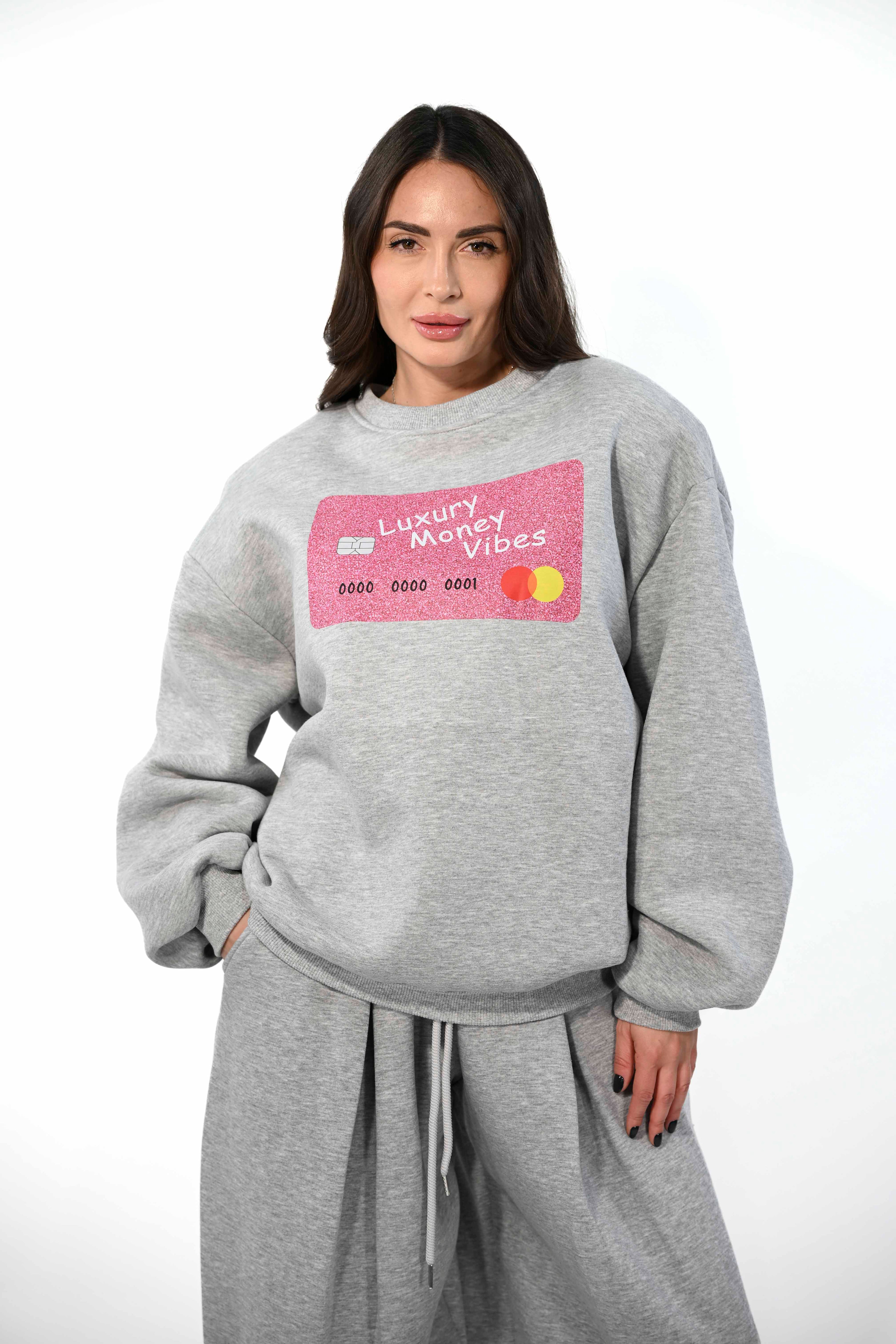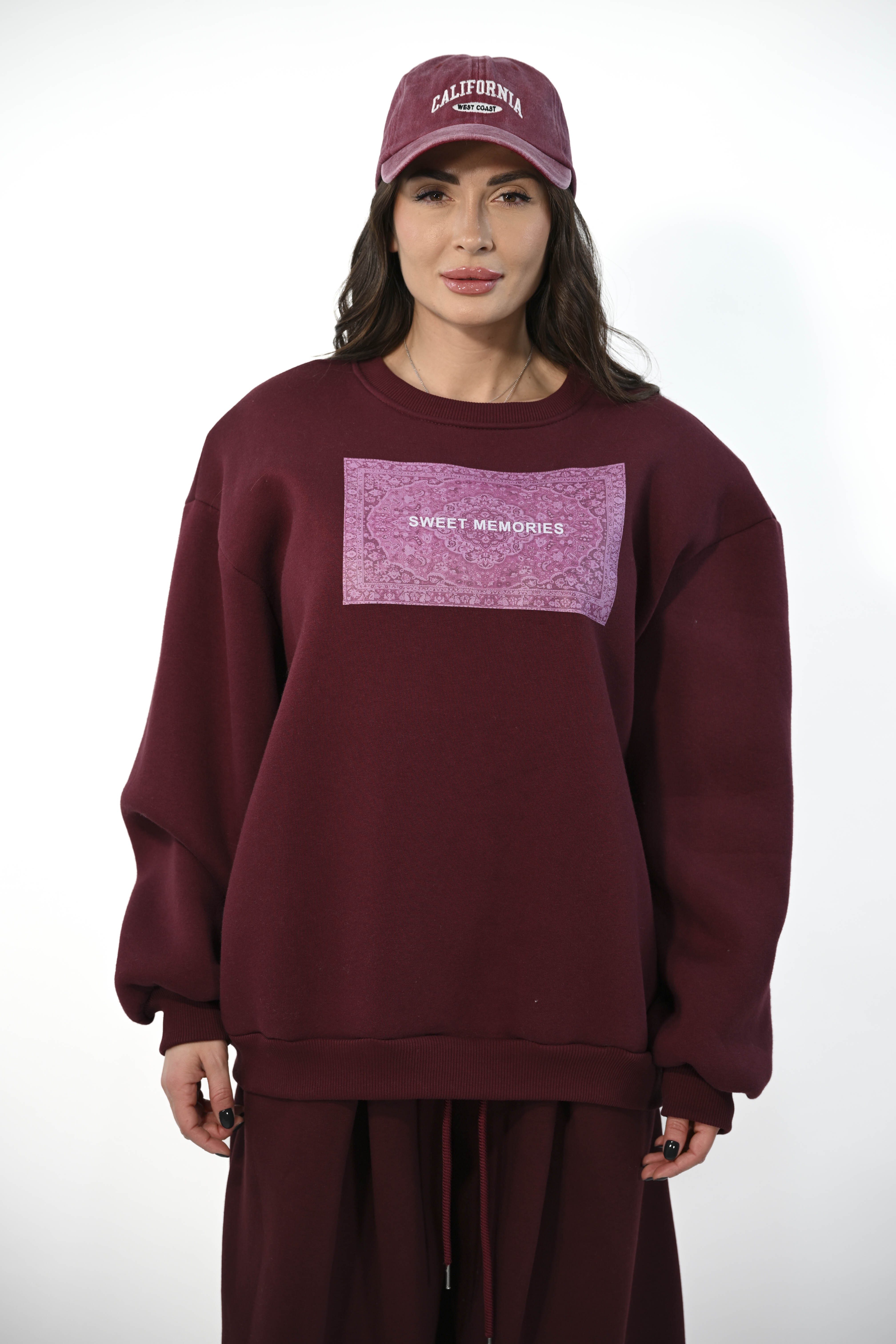 Tuta due pezzi in felpa, morbida e felpata internamente. Felpa girocollo con stampa frontale e pantalone balloon con coulisse in vita regolabile per una vestibilità comoda. Taglia unica, perfetta per un look casual e super confortevole.