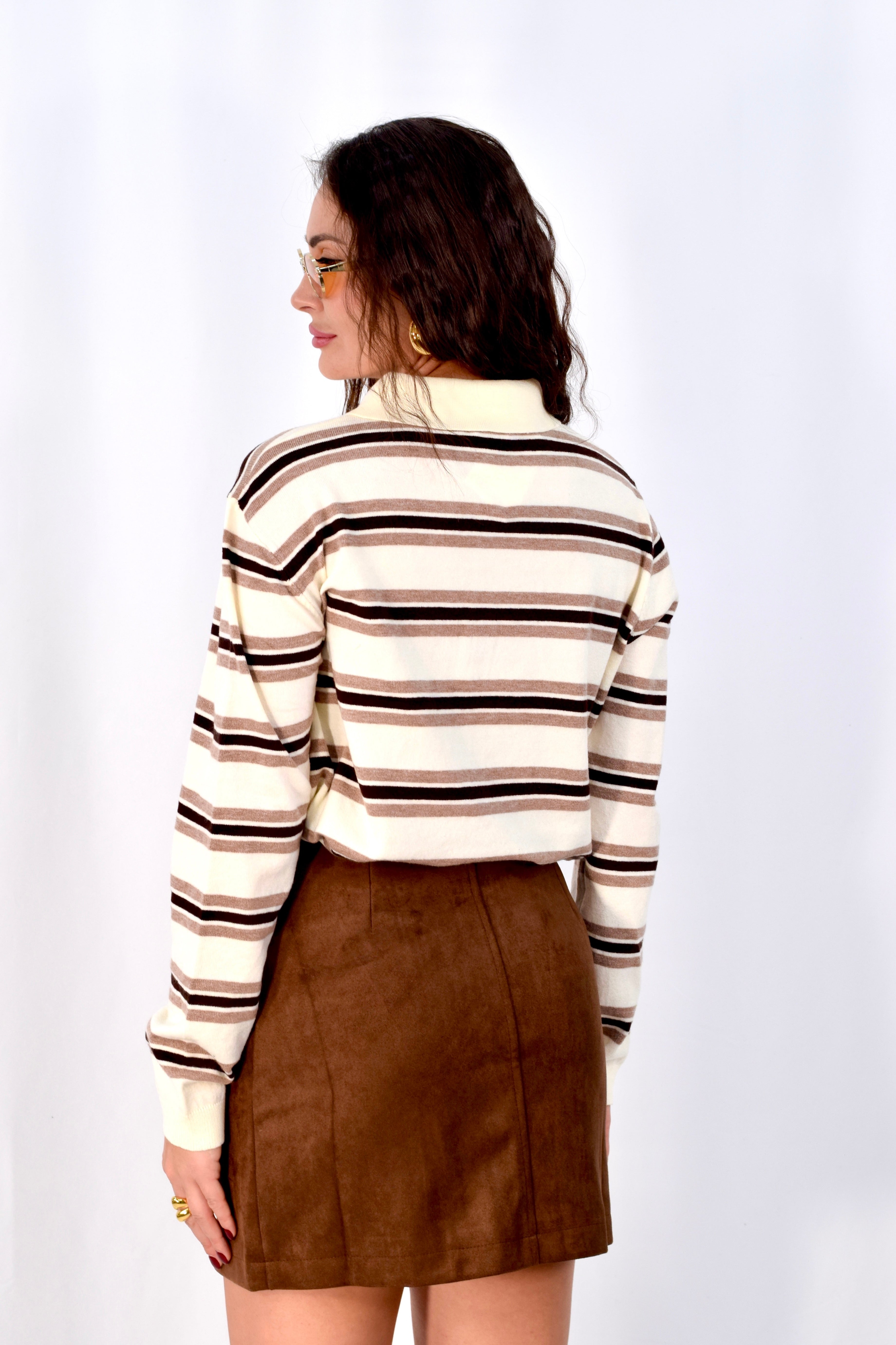 Polo a righe in lana elasticizzata, calda, comoda e dal look essenziale ma stiloso. Vestibilità morbida, perfetta per la stagione fredda. Taglia unica.