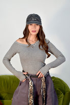 Maglia a maniche lunghe in costine, 100% cotone caldo, con scollo tondo asimmetrico, morbida e confortevole, perfetta per outfit casual e dal tocco moderno.