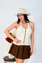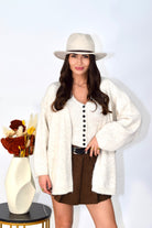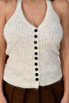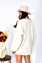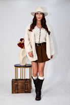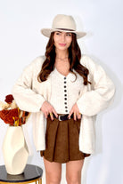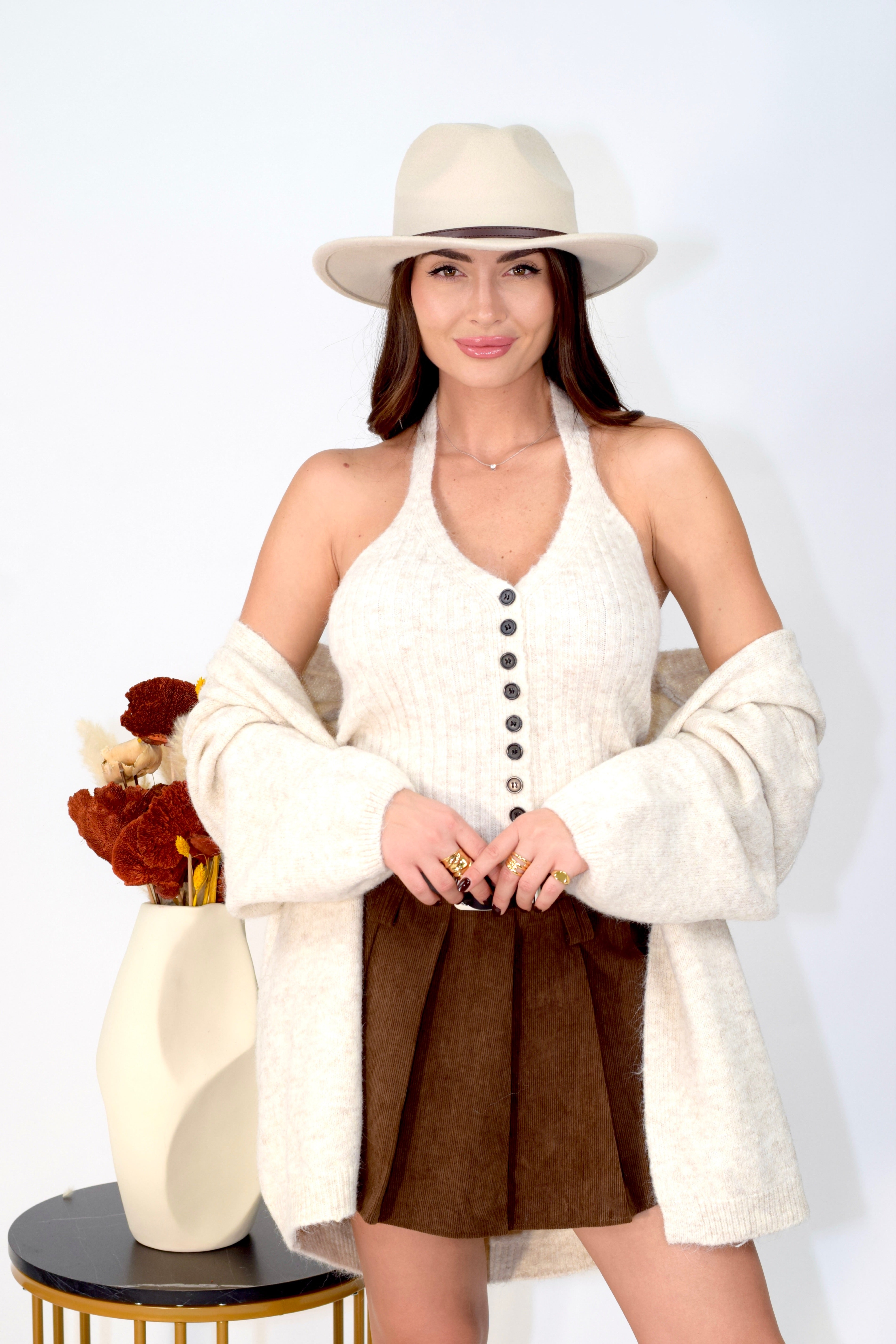 Set composto da gilet con scollo profondo sul retro e bottoncini frontali, abbinato a cardigan aperto con maniche leggermente a sbuffo. Morbido, caldo ed elasticizzato. Taglia unica.