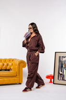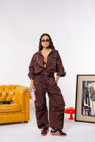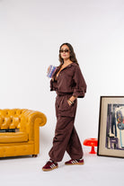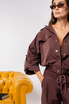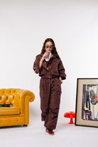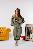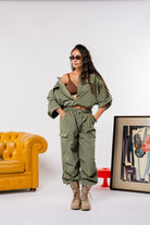 Coordinato 2 pezzi composto da giacca mezza manica con chiusura frontale a clip ed elastico in vita, abbinata a pantalone cargo ampio e comodo con elastico in vita e coulisse sul fondo regolabile. Taglia unica, perfetto per un look pratico e stiloso.
