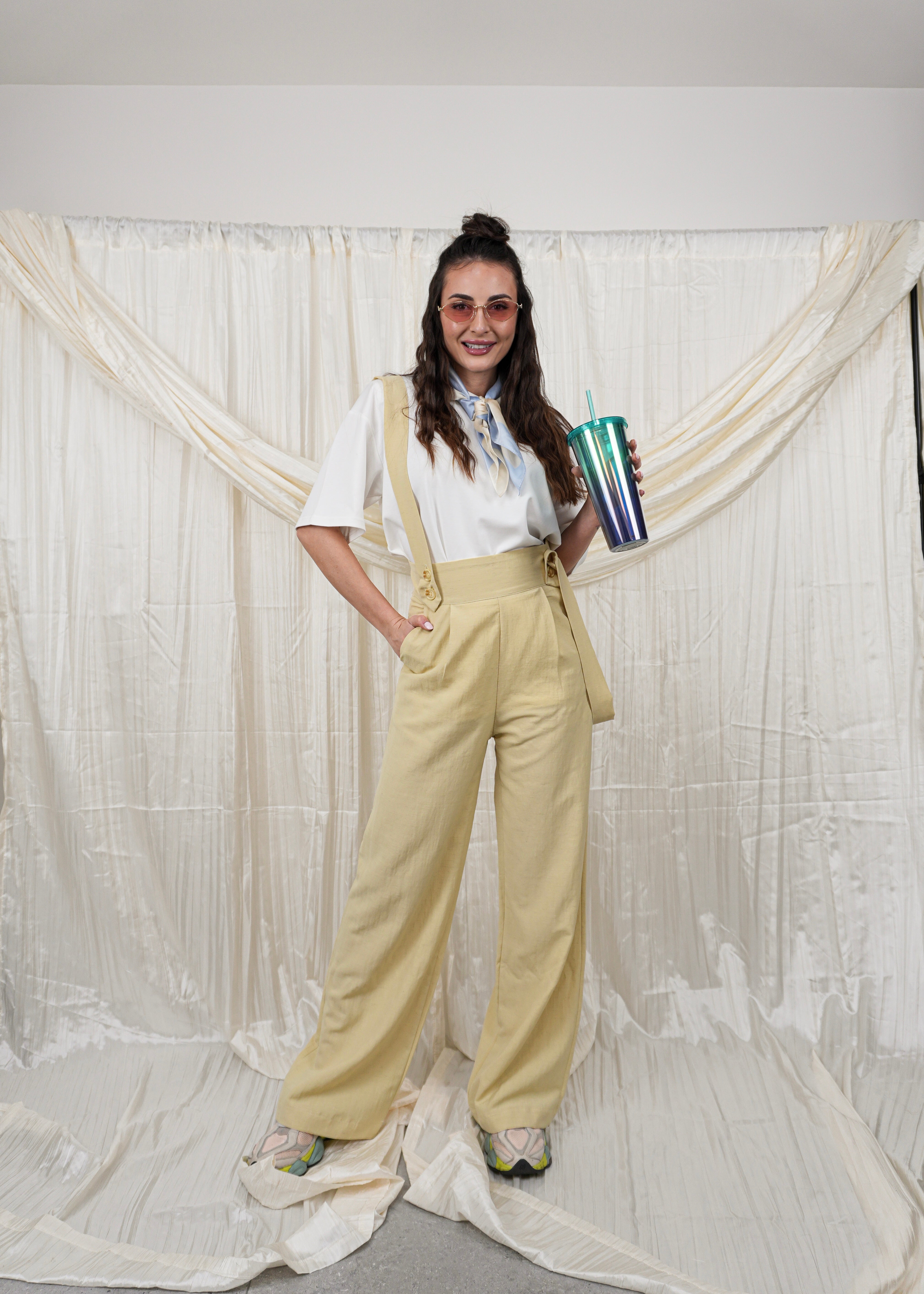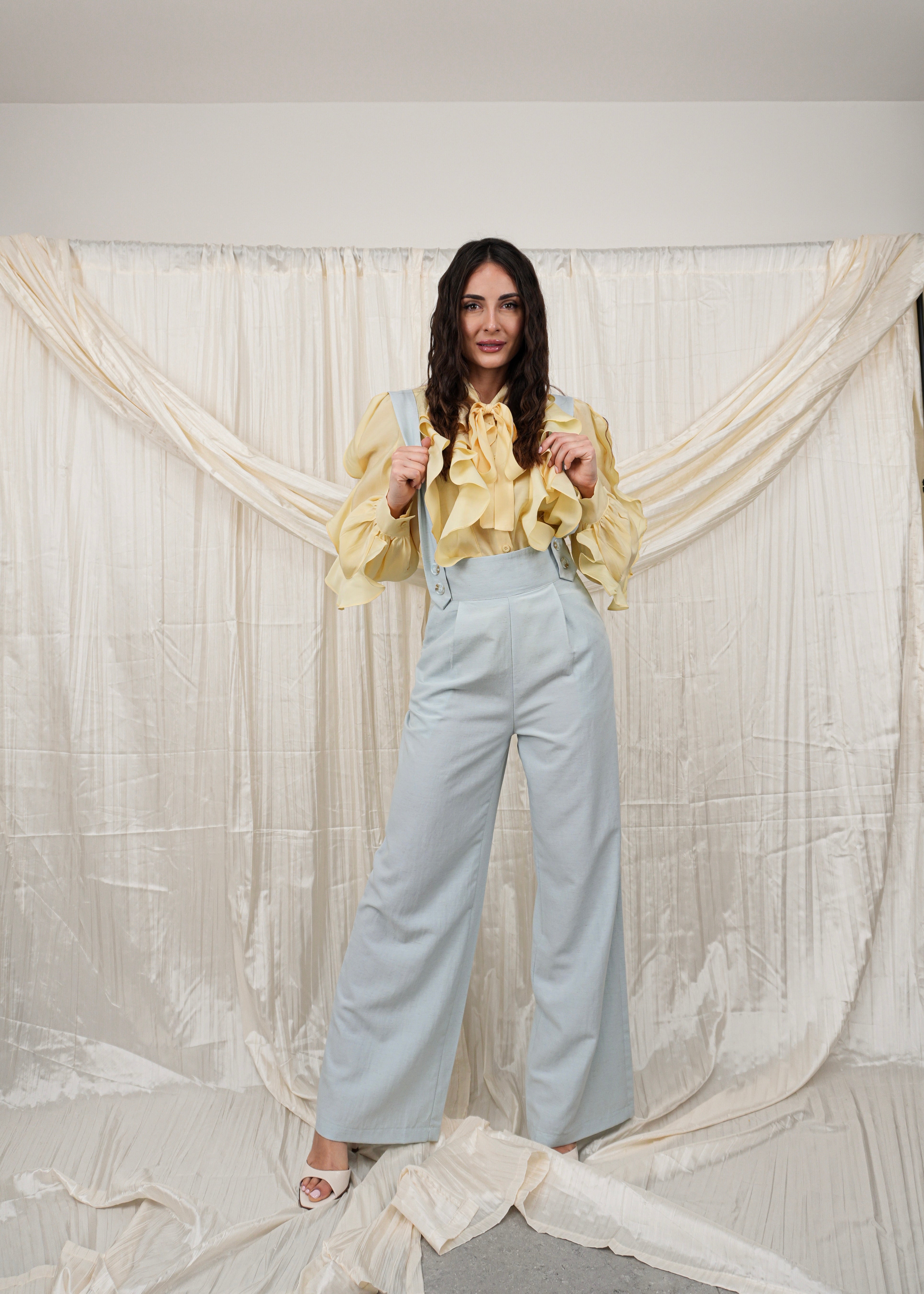 Salopette in cotone leggero con bretelle, comoda e fresca, ideale per un look casual e rilassato. Perfetta per la stagione estiva!