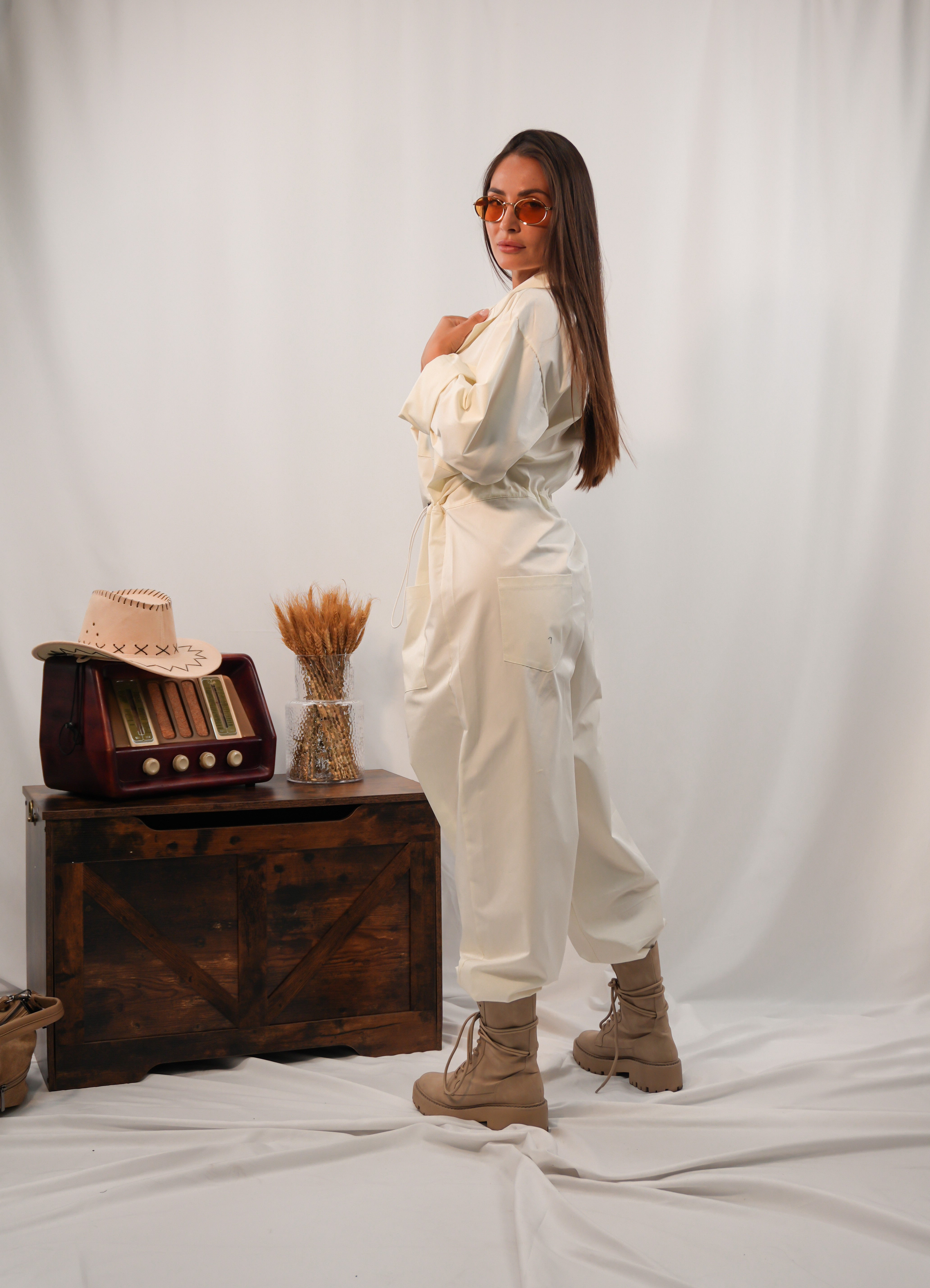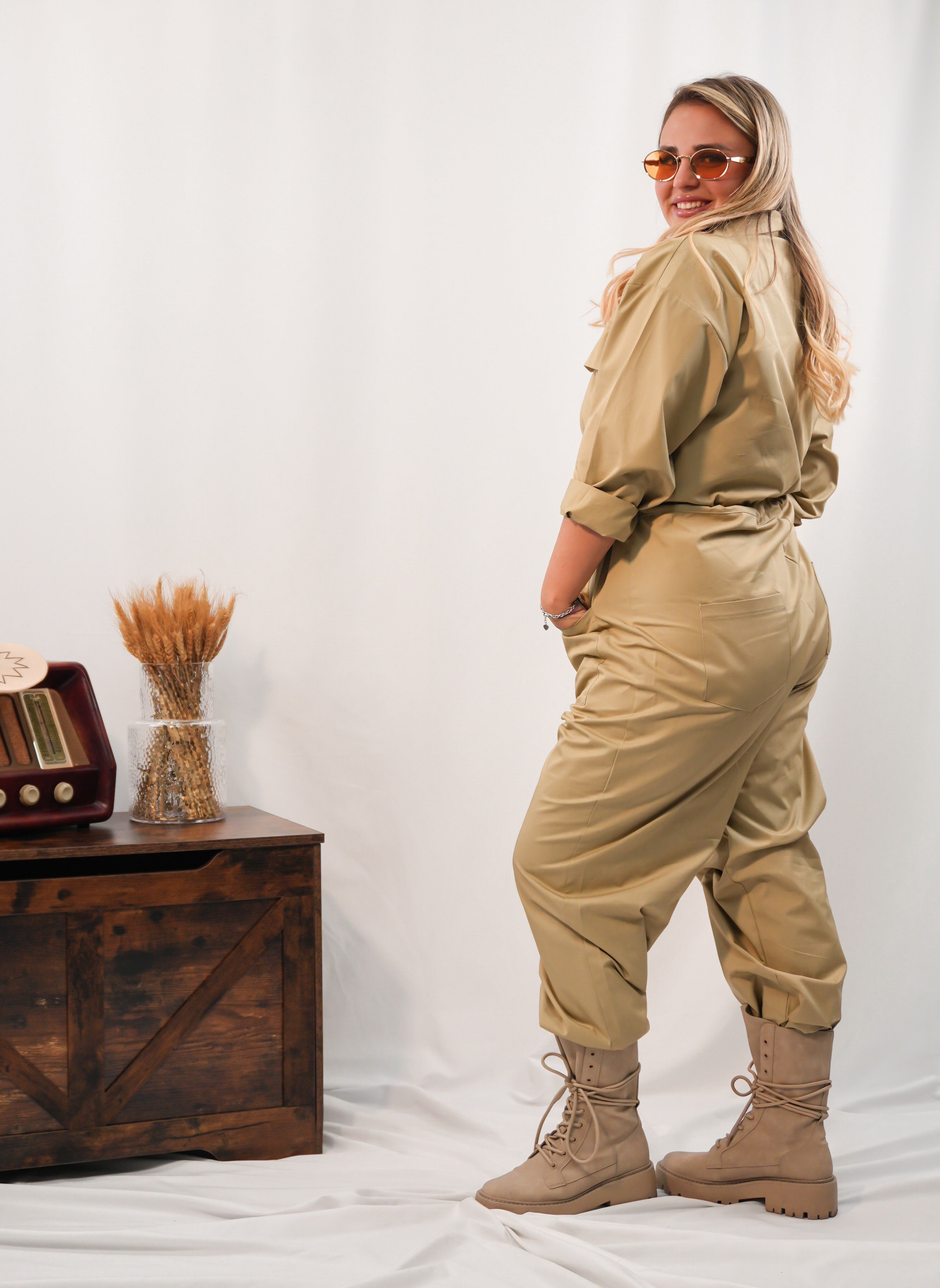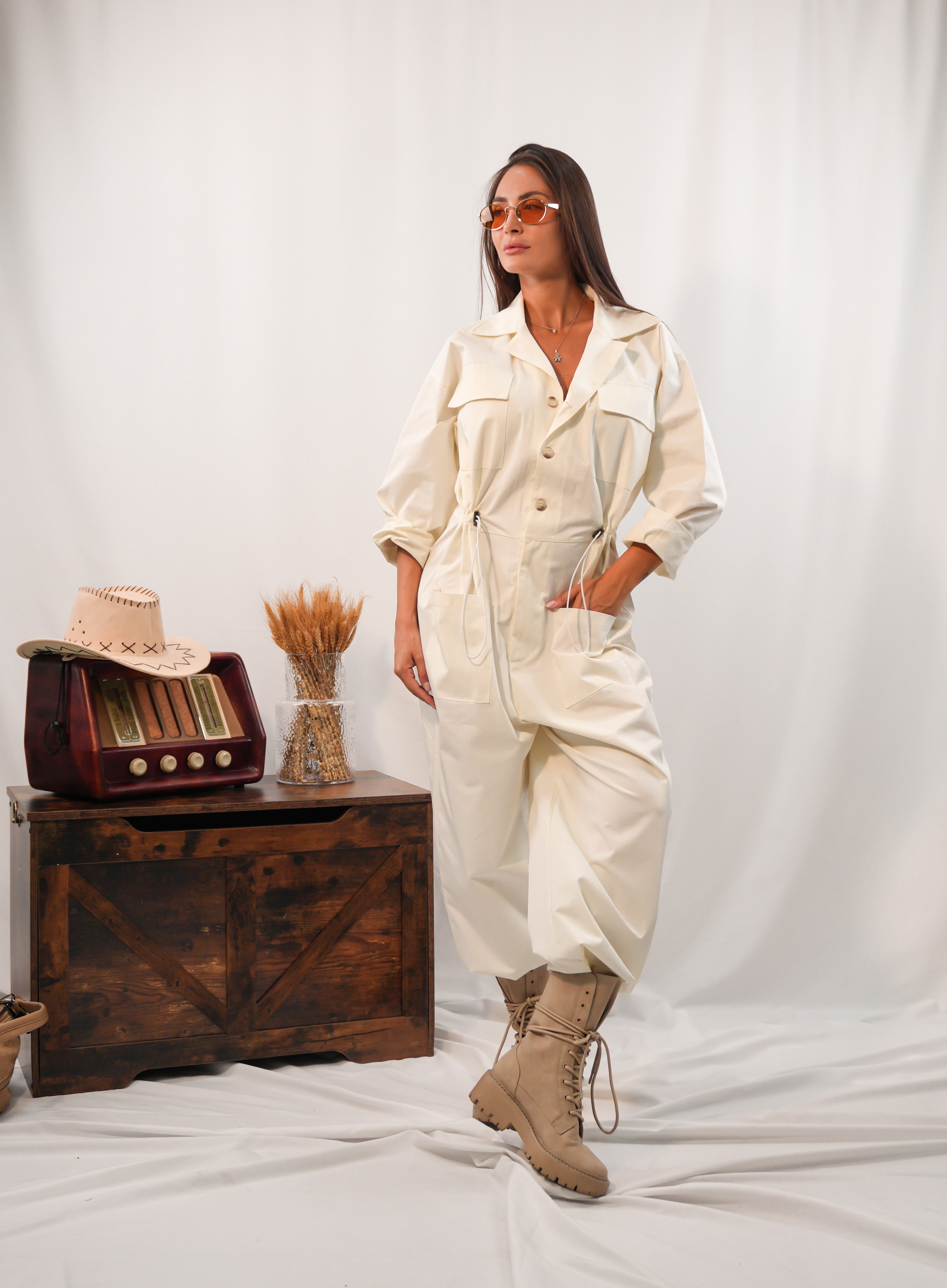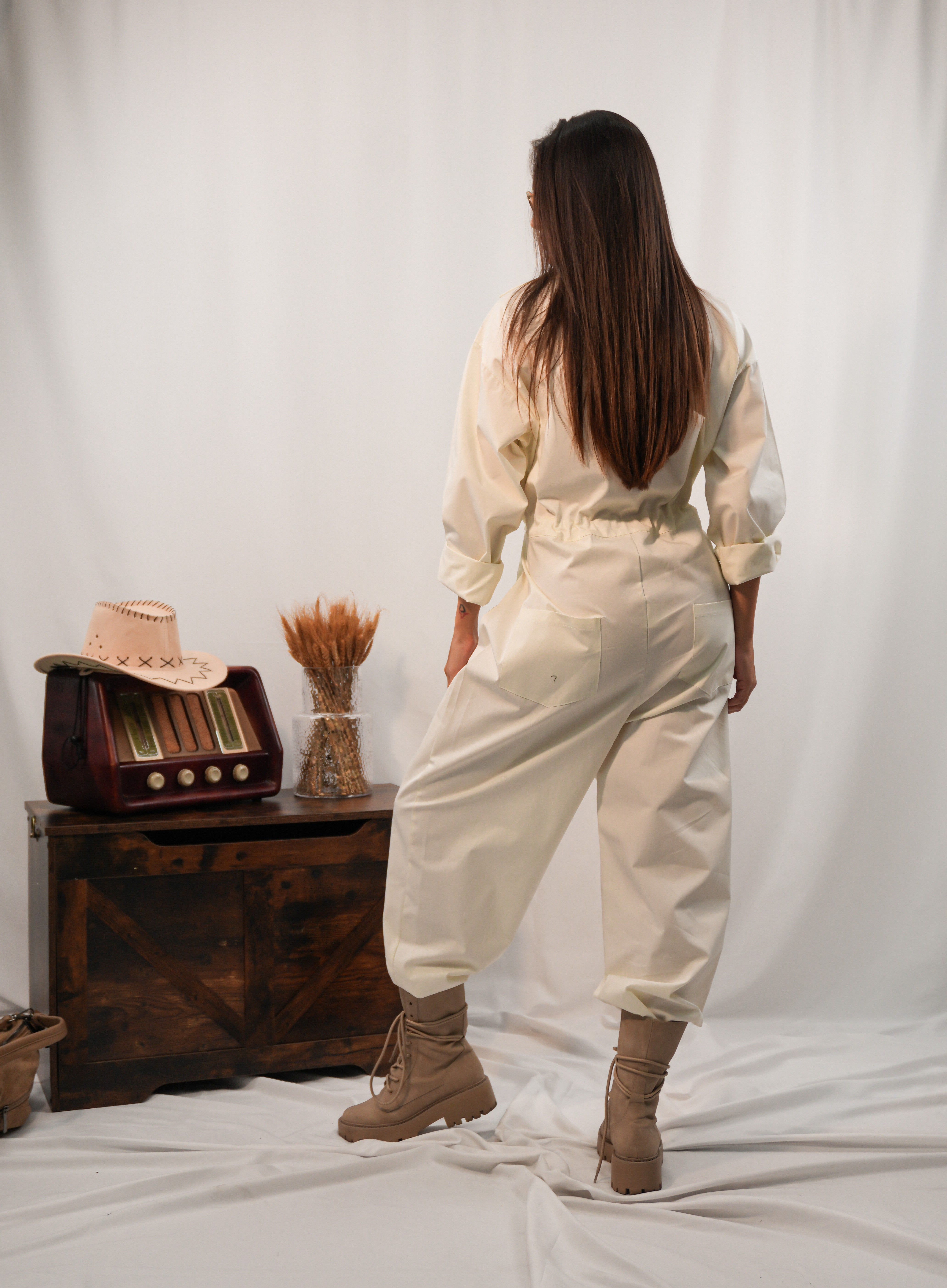 Tuta con tasconi frontali e coulisse in vita regolabile, pensata per unire praticità e stile. Il fit morbido e la taglia unica la rendono adatta a diverse fisicità, garantendo comfort e versatilità in ogni occasione.
