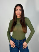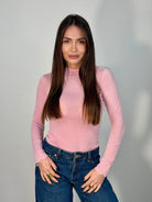 T-shirt a manica lunga velata con mezzo collo, realizzata in morbido misto cashmere. Leggera, elegante e versatile, veste comodamente grazie alla taglia unica. Perfetta per look raffinati e quotidiani.